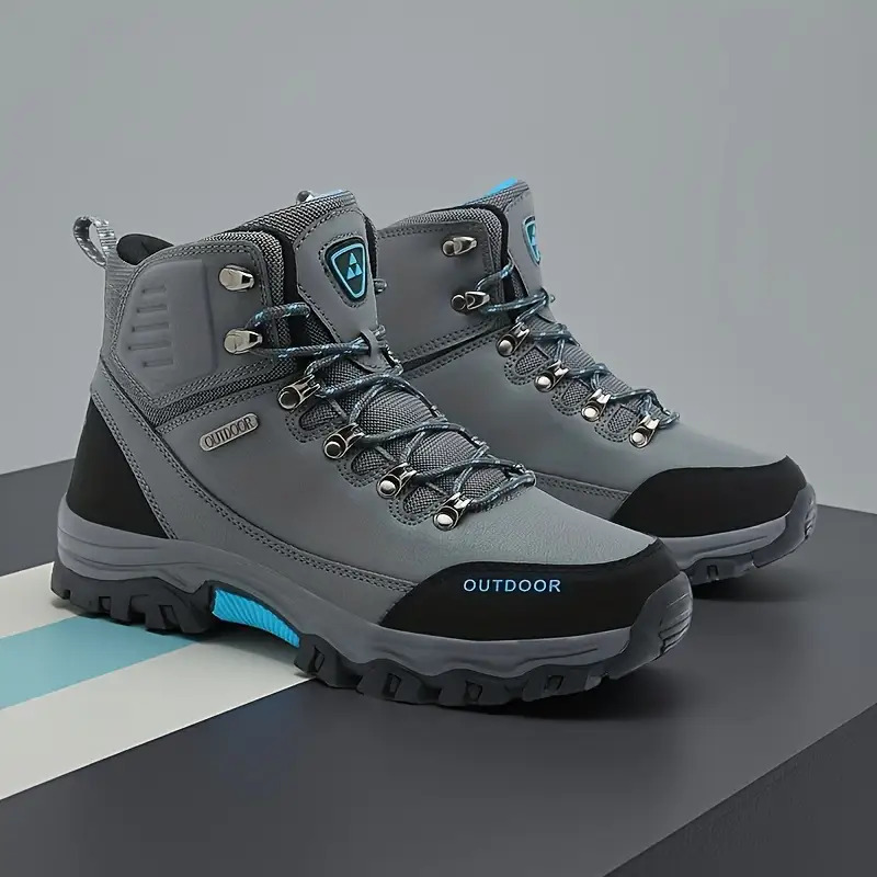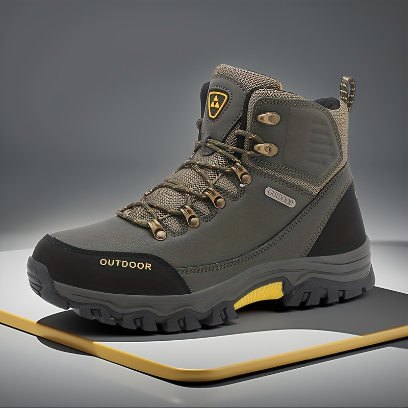 Men's All-Season High-Top Hiking Shoes/Flats - Heavy-Duty & Rubber Boots-like Design, Lace-Up Outdoor Trekking Sneakers for Camping, Mountain Climbing, Trail Shoes For Men, Mountain Shoes For Men, Hill Shoes For Men, Heavy Du