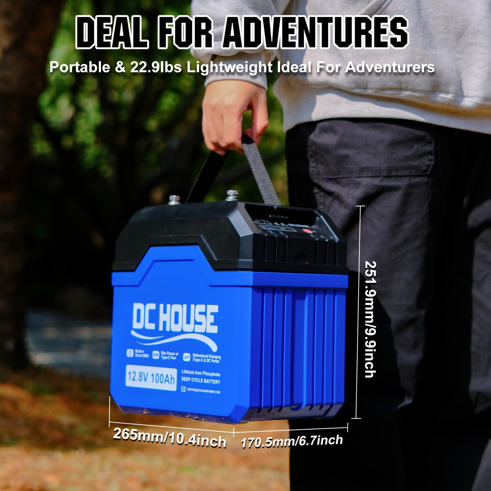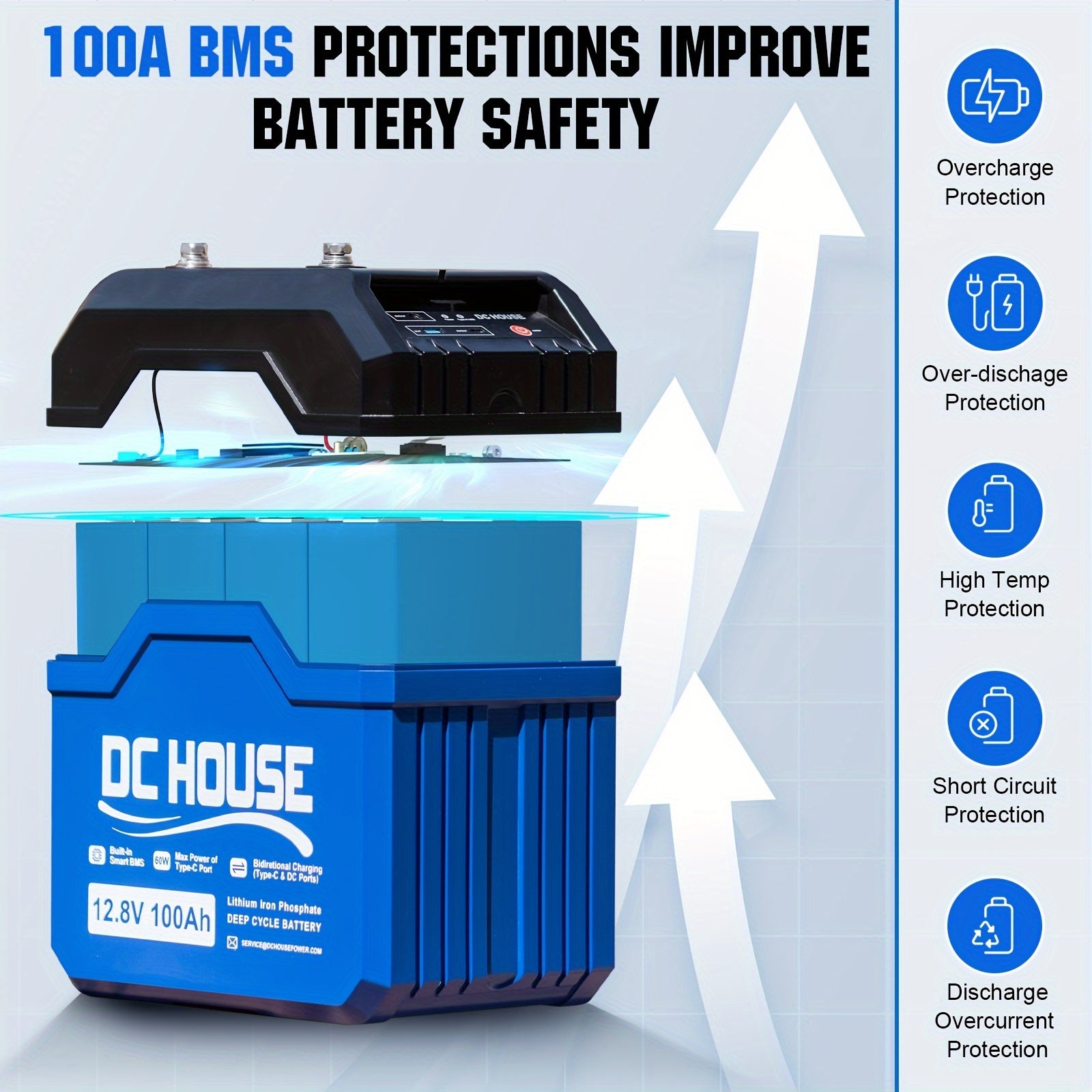 12V 100Ah Upgrade LiFePO4 Lithium Battery, 1280W, With Type-C Ports, 5000+ Deep Cycles Battery For Off-Grid Solar System