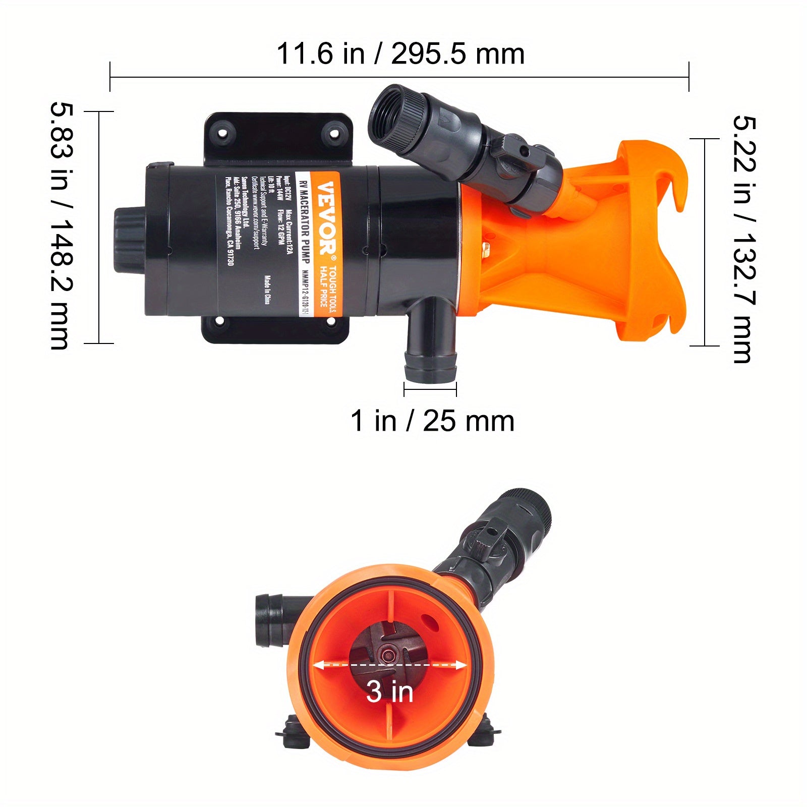 12V, 12GMP Quick Release RV Waste Pump, RV Sewer Pump with Detachable Quick Connection Valve Metal Hose Clamp Power Cord