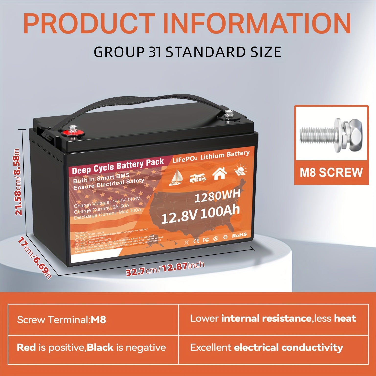 12V Lithium Battery 100AH With BMS And 8000 Deep Cycles