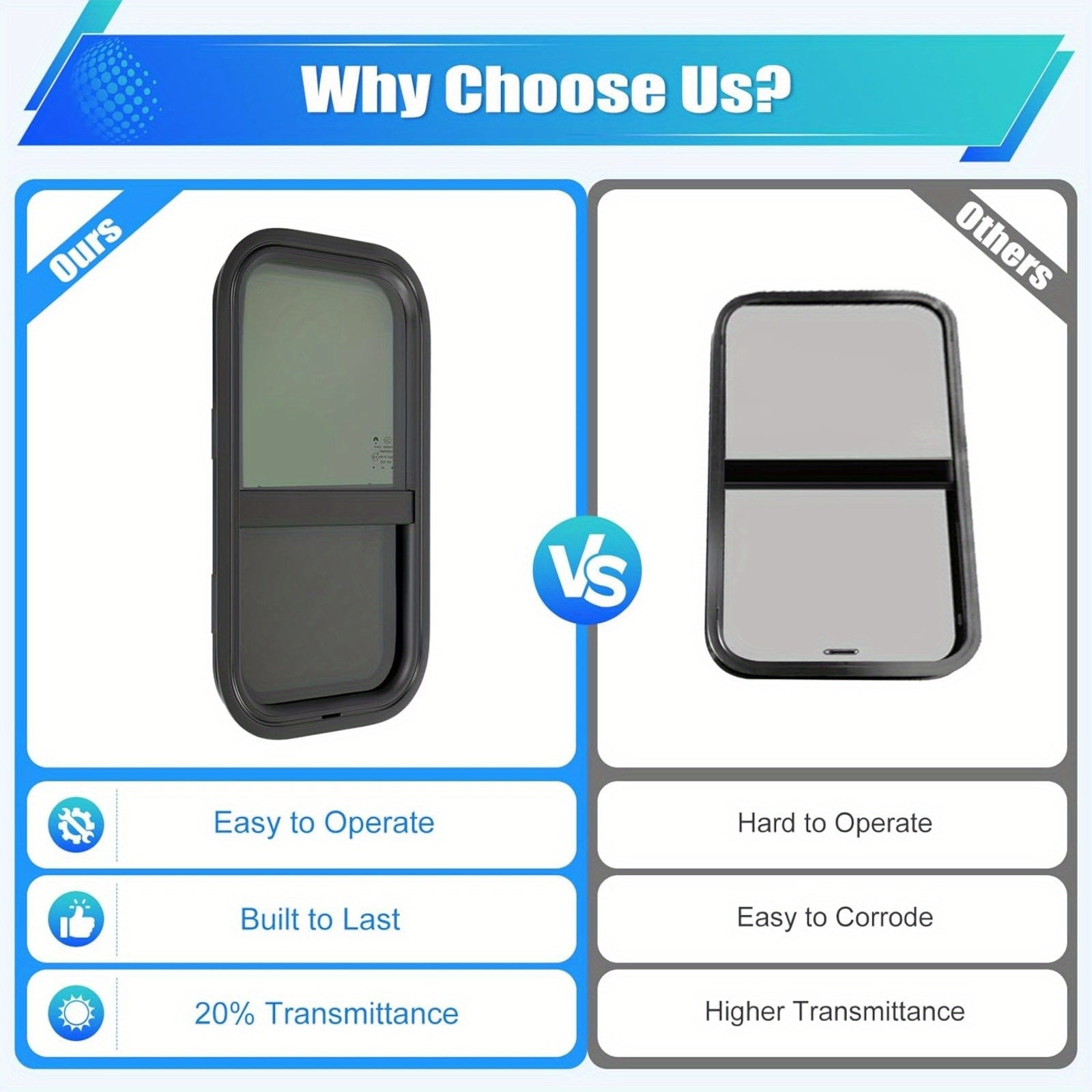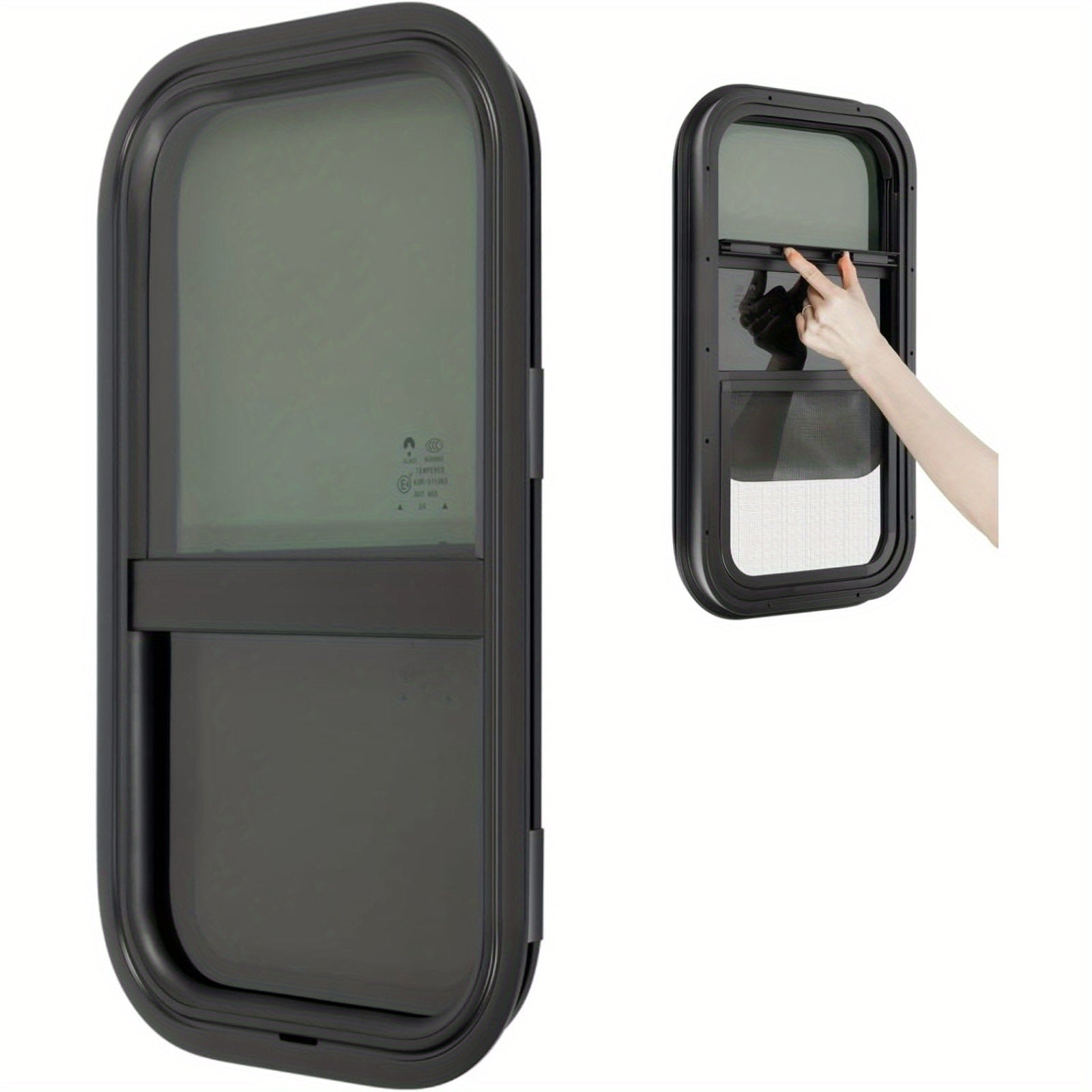 12"x22" Vertical RV Window, Push-Pull Tempered Glass with Screen - Watertight & Sun Protection, Easy Installation