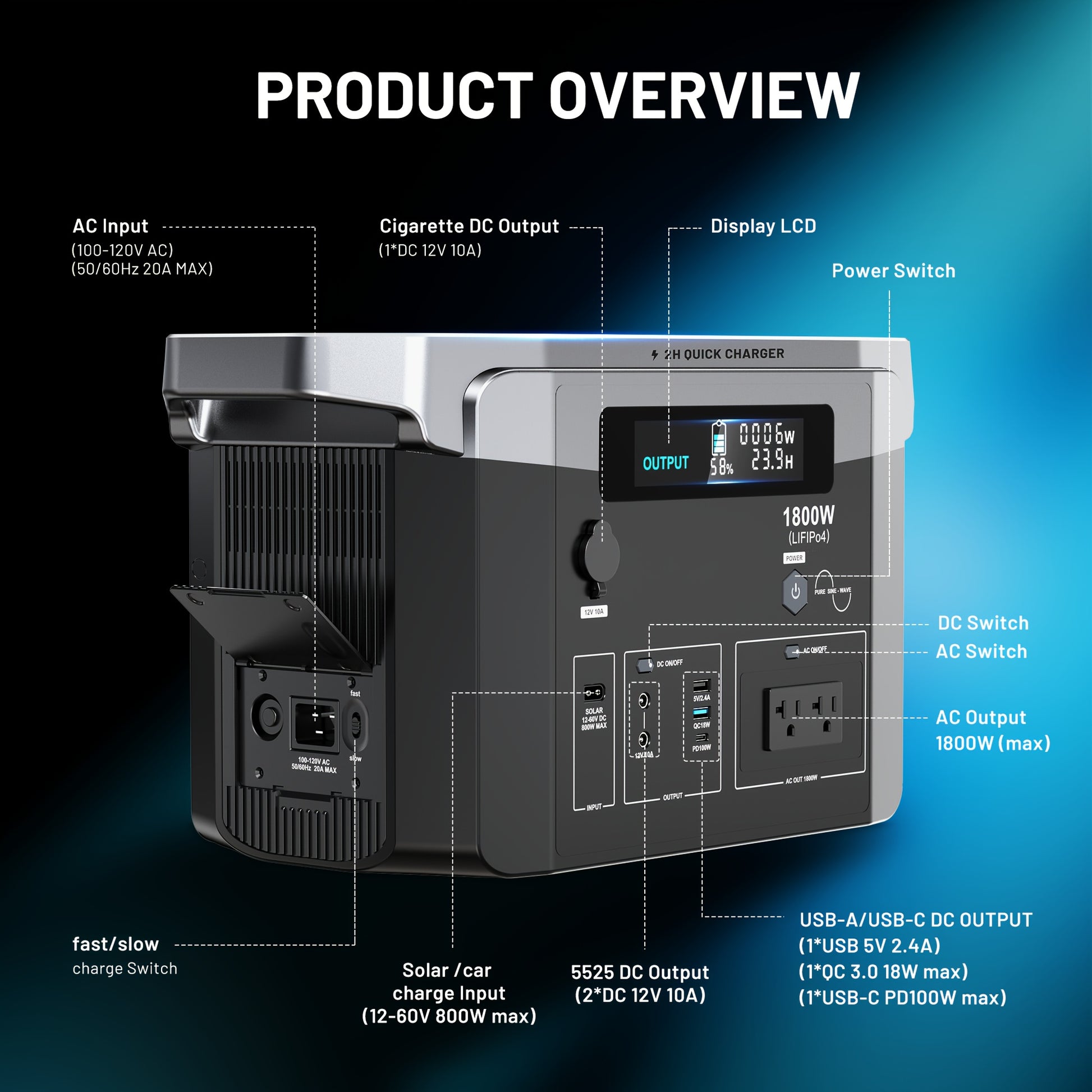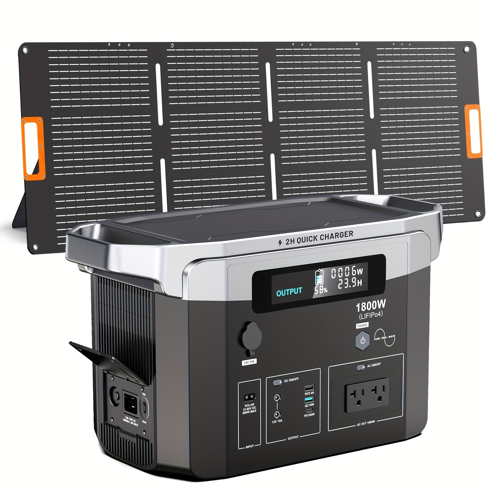 1800W, 1536Wh Solar Systems Portable Power Station with 200W Solar Panel Included, Solar Powered Generator Lifepo4