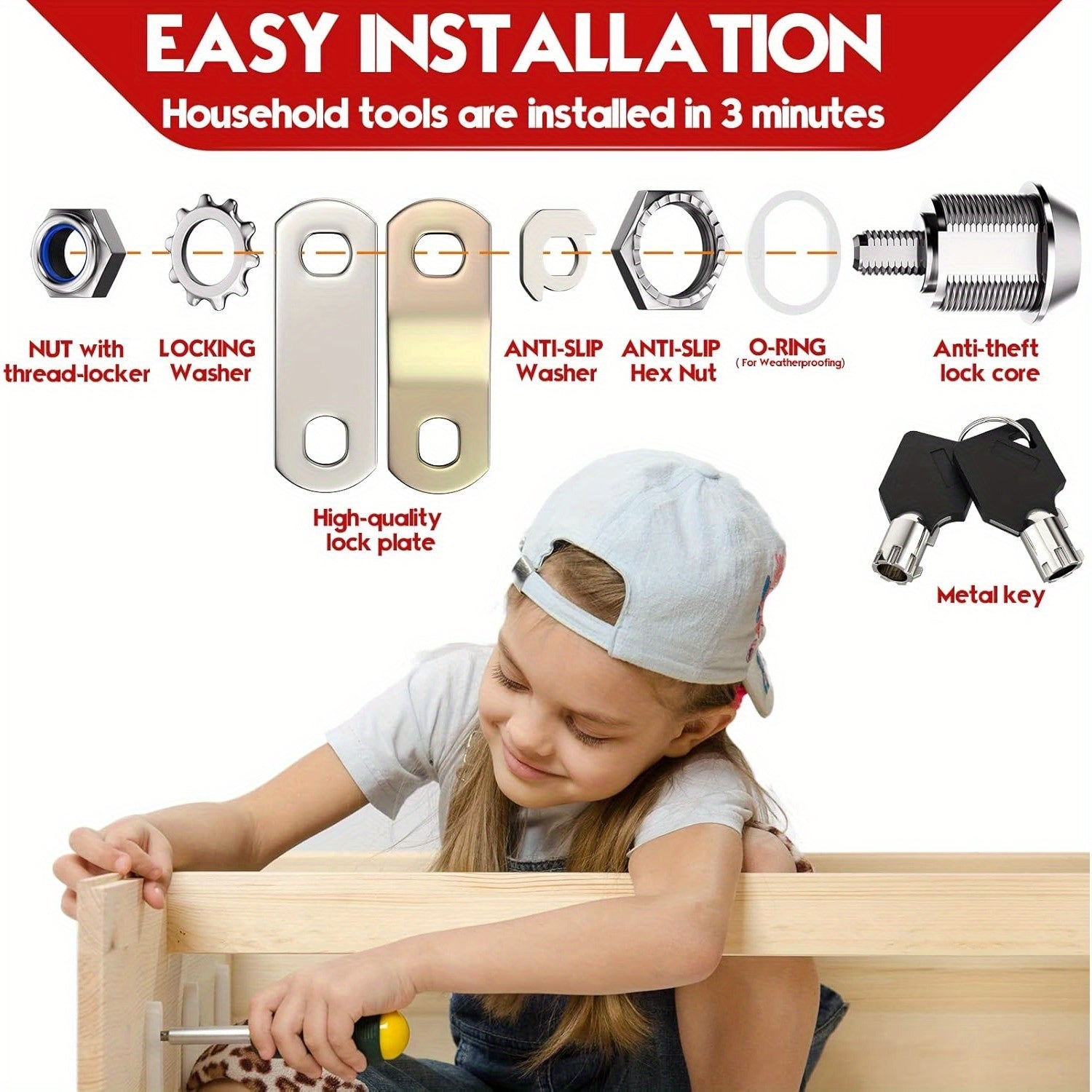 4pcs Chrome Tubular Cam Locks for RVs & Cabinets - Keyed Alike, Removable Keys, 7/8" 90°