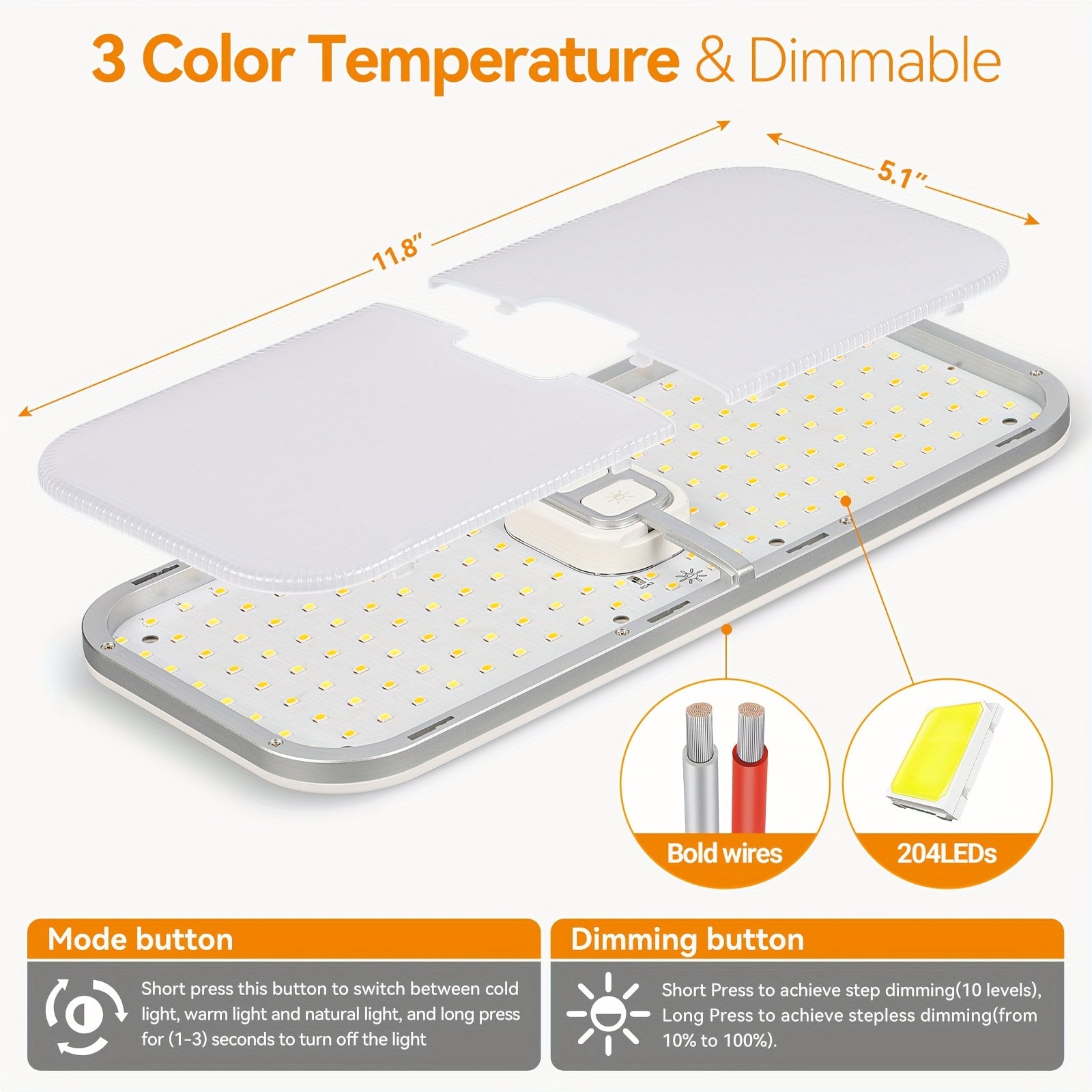 4Pcs RV Lights Interior, 3 Color TEM Camper Lights, 204 LEDs Dimmable 12v Volt Led Lights Fixtures