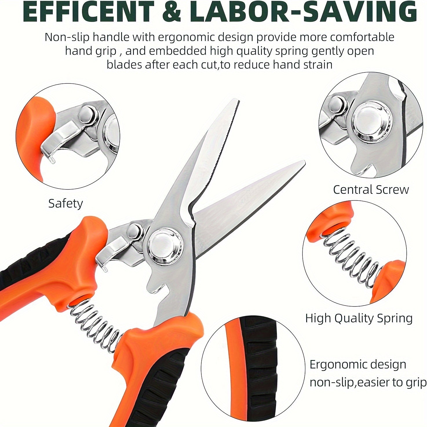 6-Pack Classic Style Stainless Steel Garden Shears, Ergonomic Non-Slip Metal Handheld Gardening Clippers, High-Quality Spring Assisted Pruners