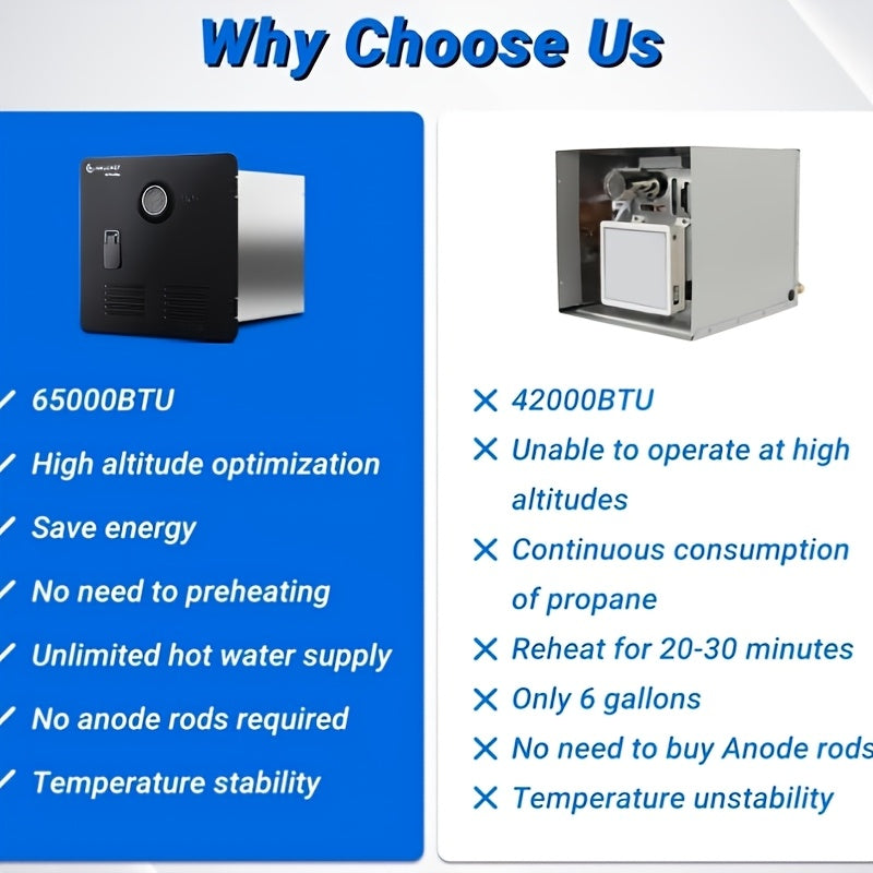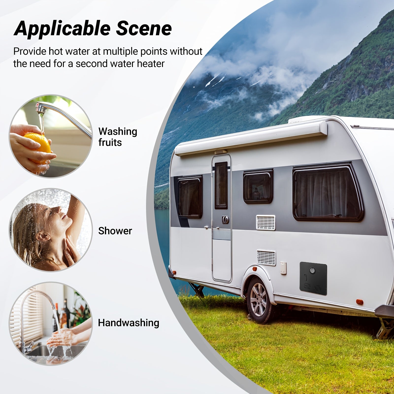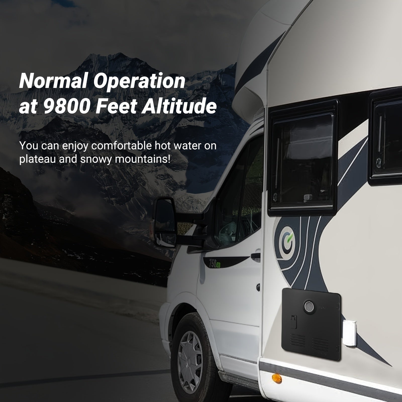 65,000BTU, 3.9 GPM, 12V, 9800ft Endless Hot Water, Black Door & Remote Control, LCD Display
