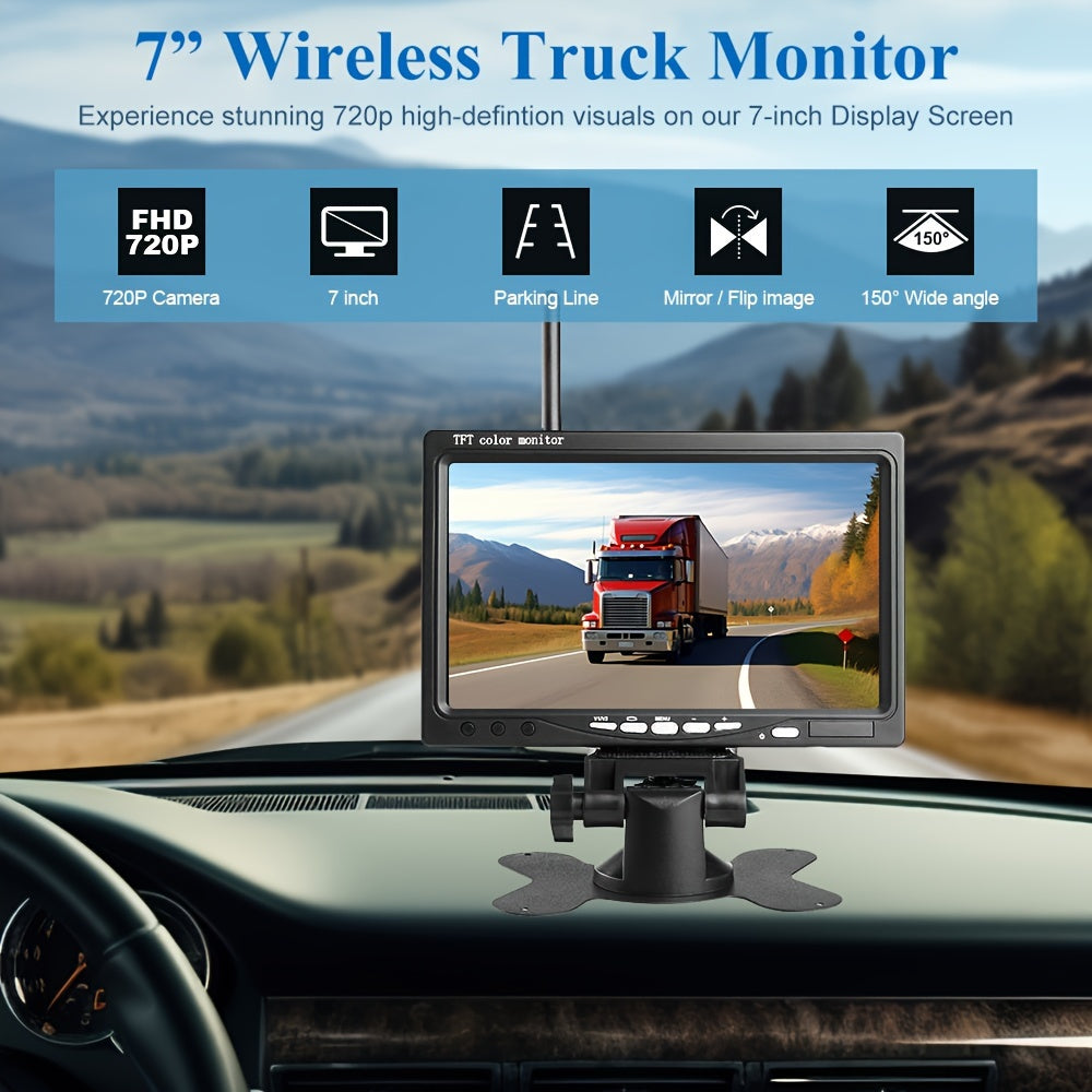 7" Wireless 12v 24v Backup Rear View Camera System, With Night Vision