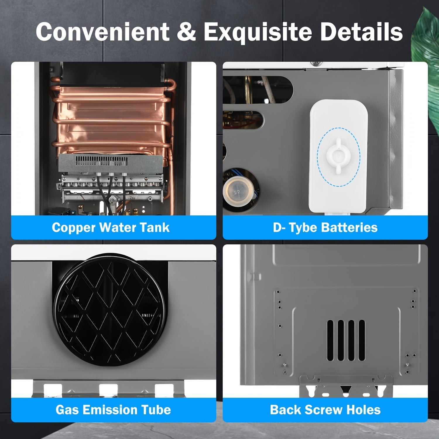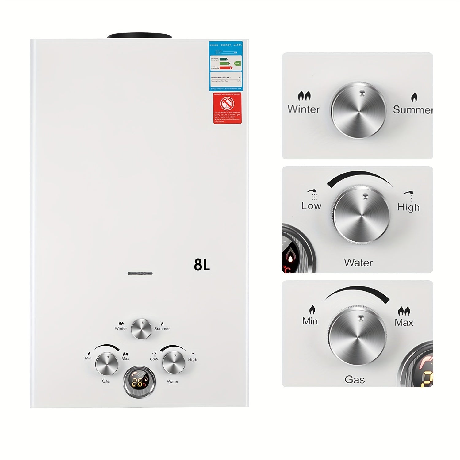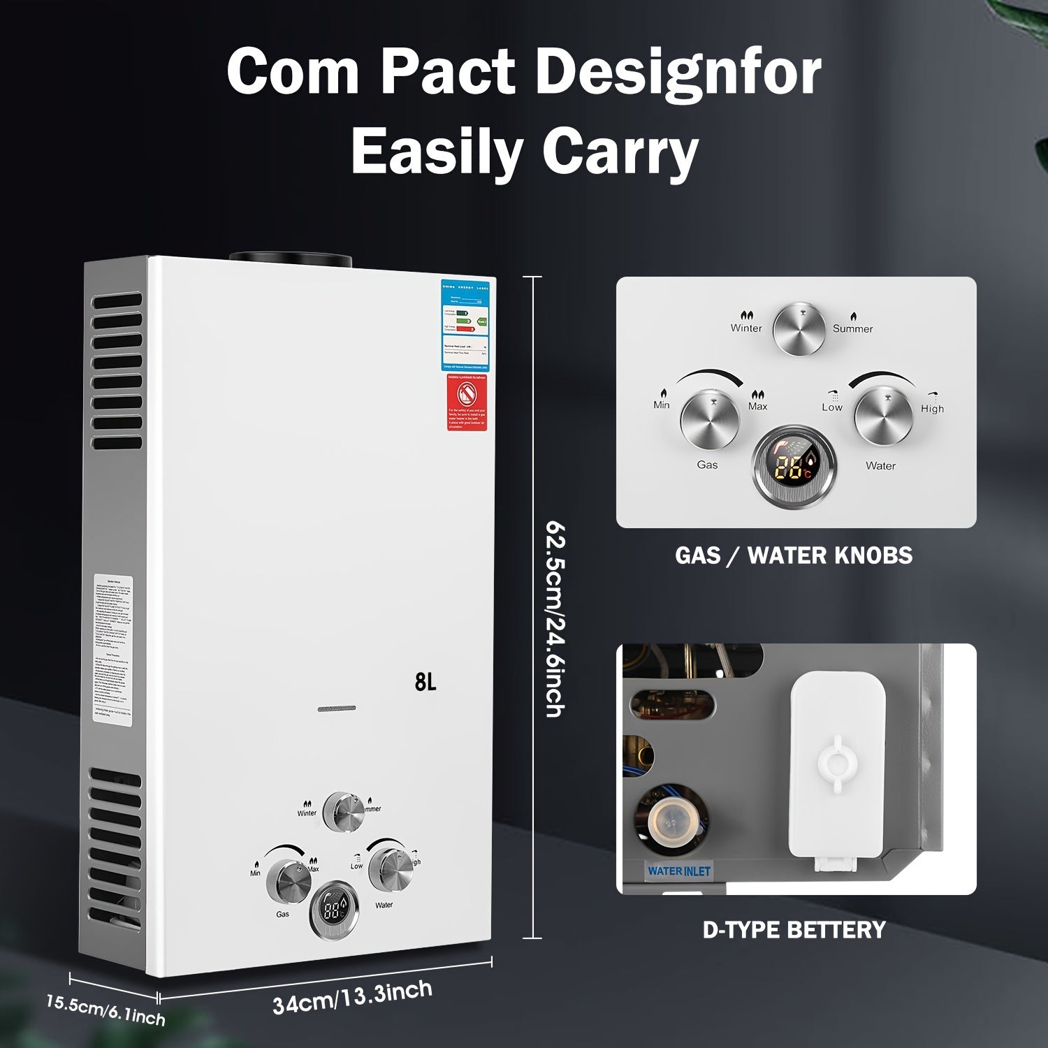 8L Tankless Propane Water Heater with Digital Display - Wall-Mounted