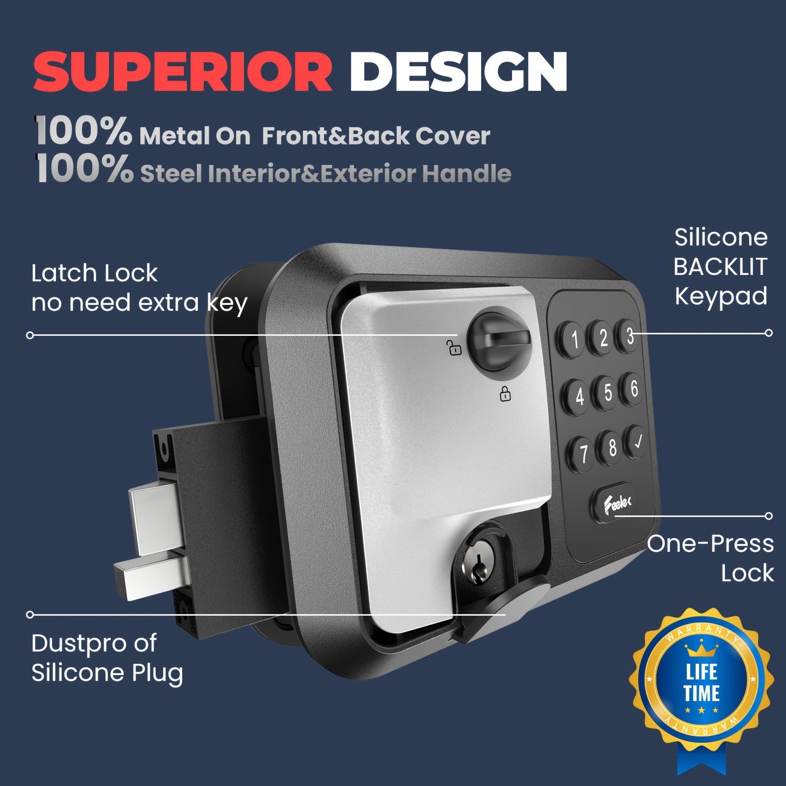 All-Metal Trailer Door Lock With Silicone And Backlit Keypad, RV Door Lock Replacement, Door Latch For 2.75'' W * 3.75'' W * 1.5'' D Hole