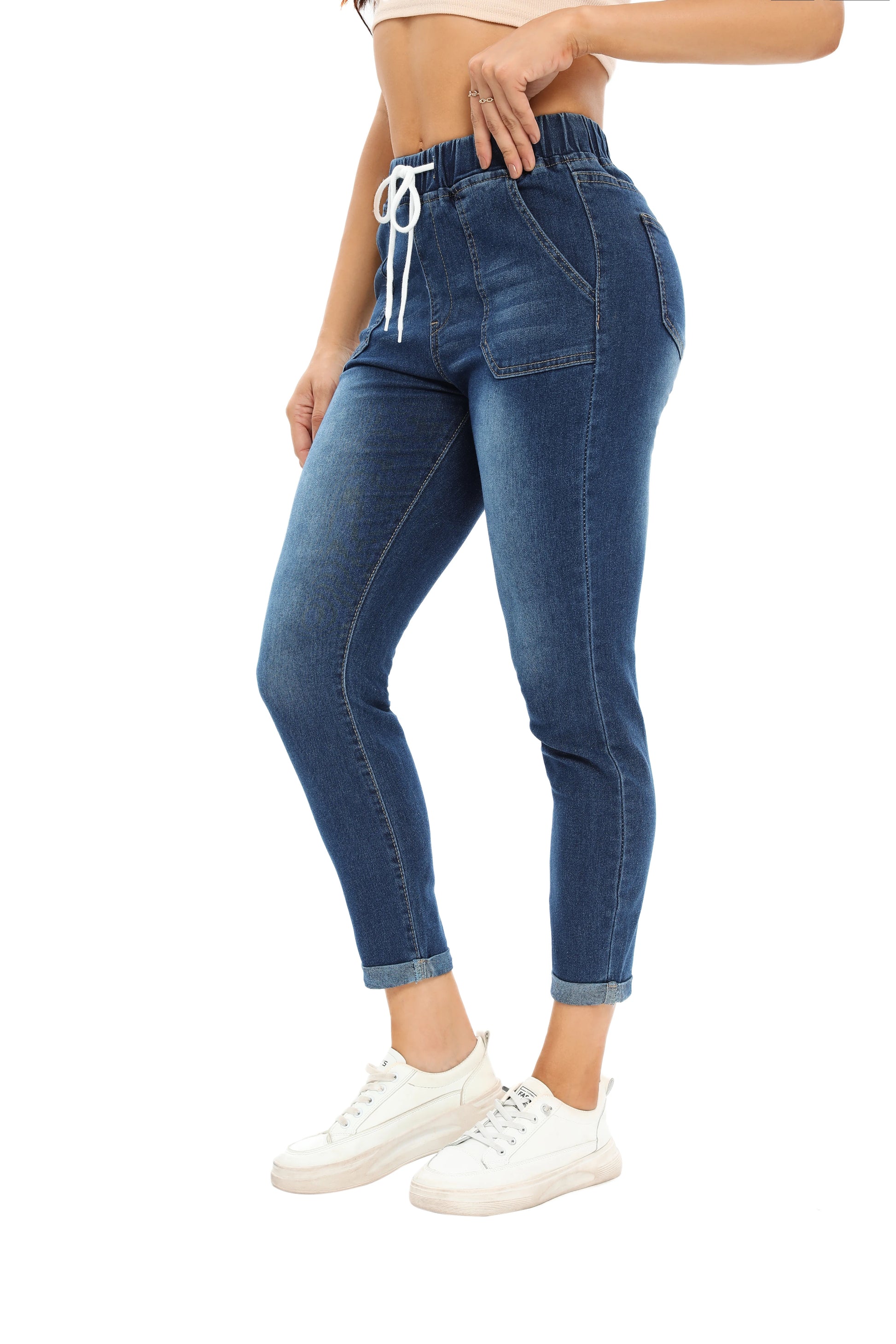 Autumn New Women's Elastic Waist Drawstring Jeans Fashion