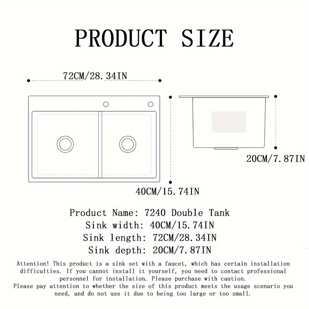 Black stainless steel double basin sink, pull out faucet set, drain basket, stainless steel, 28.34IN*15.74IN sink size, large capacity