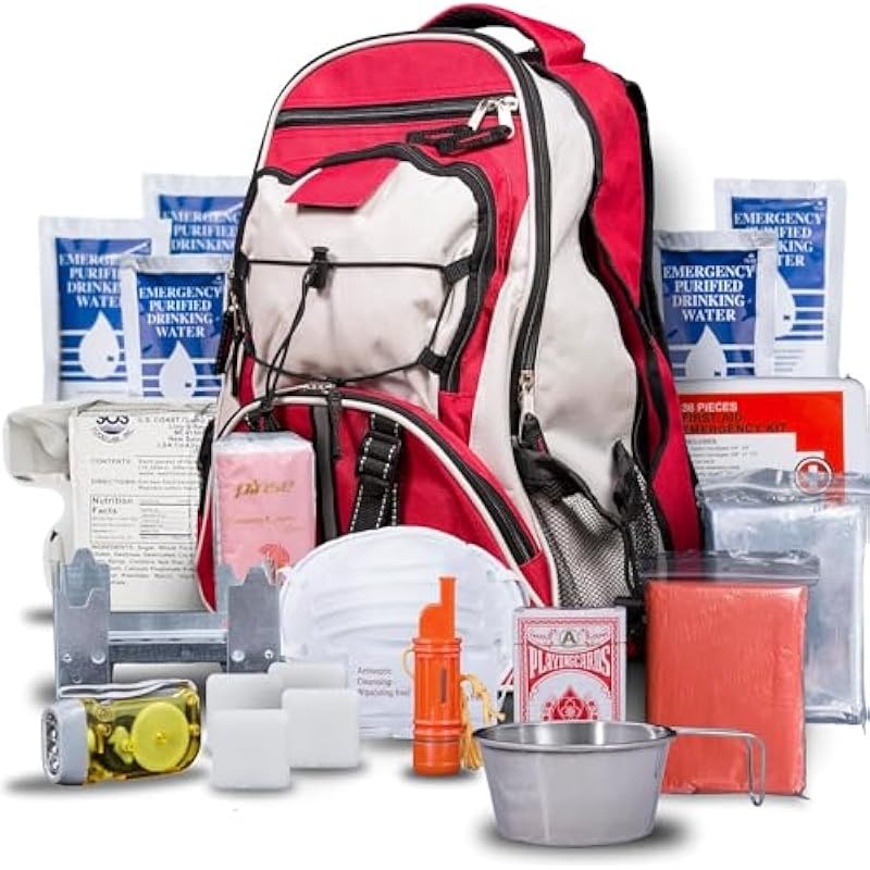 Blue Seventy-Two - Pro Series - Red Deluxe 72 Hour Emergency Backpack Survival Kit for 1 Person | Survival Kit for Emergencies Includes Water Tablets