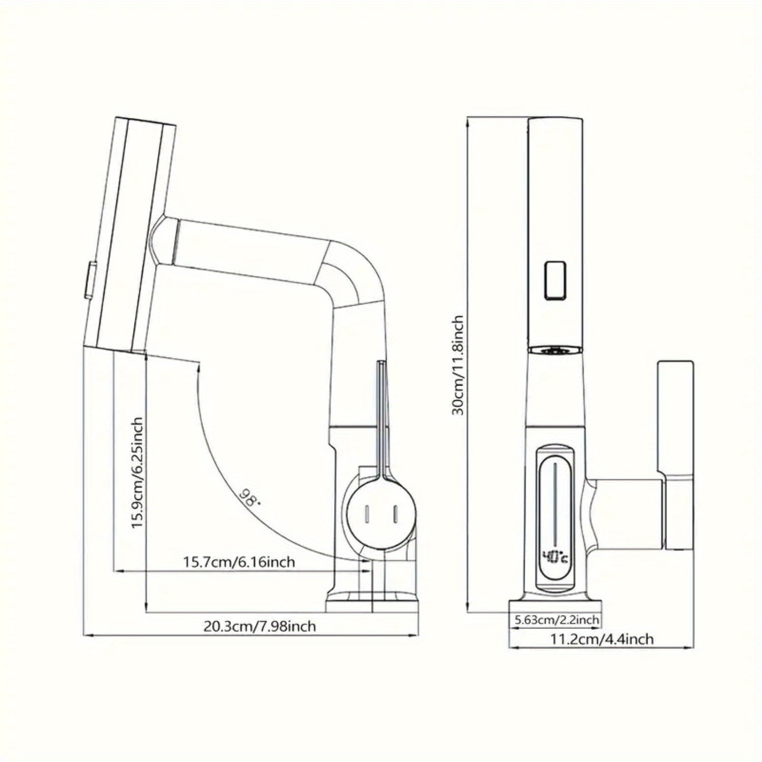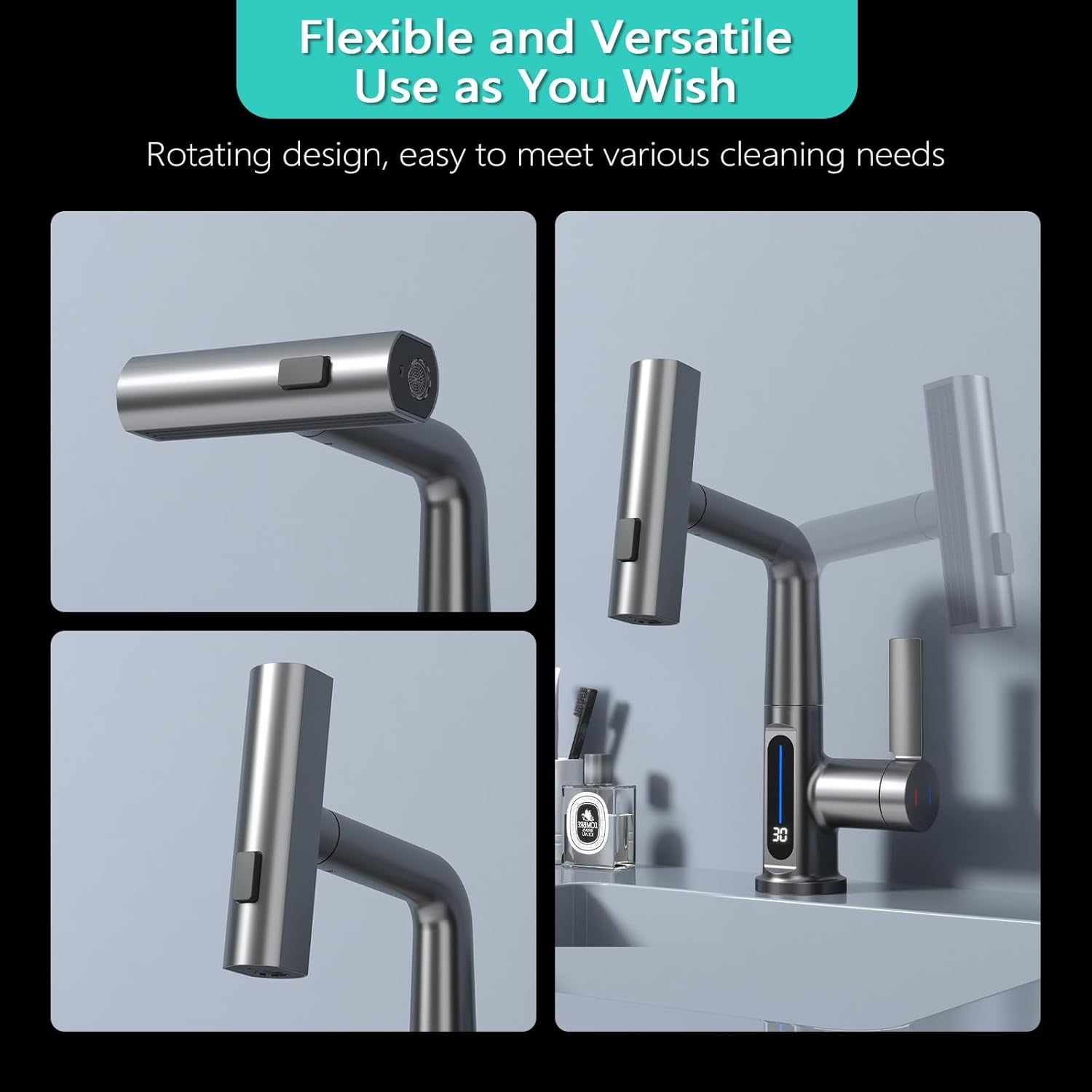 Classic Waterfall Bathroom Faucet with Pull-Down Sprayer, Digital Temperature Display