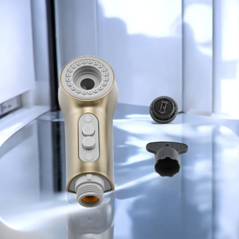 Elegant Golden Widespread Bathroom Sink Faucet with Pull-Out Sprayer