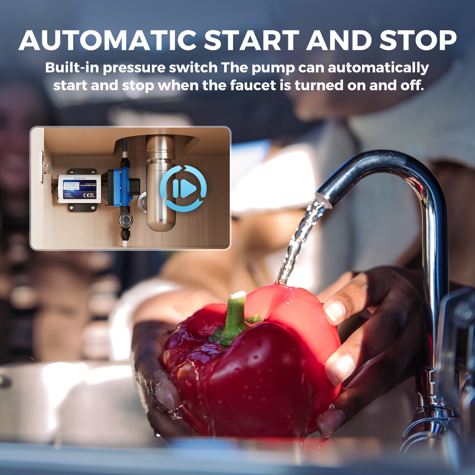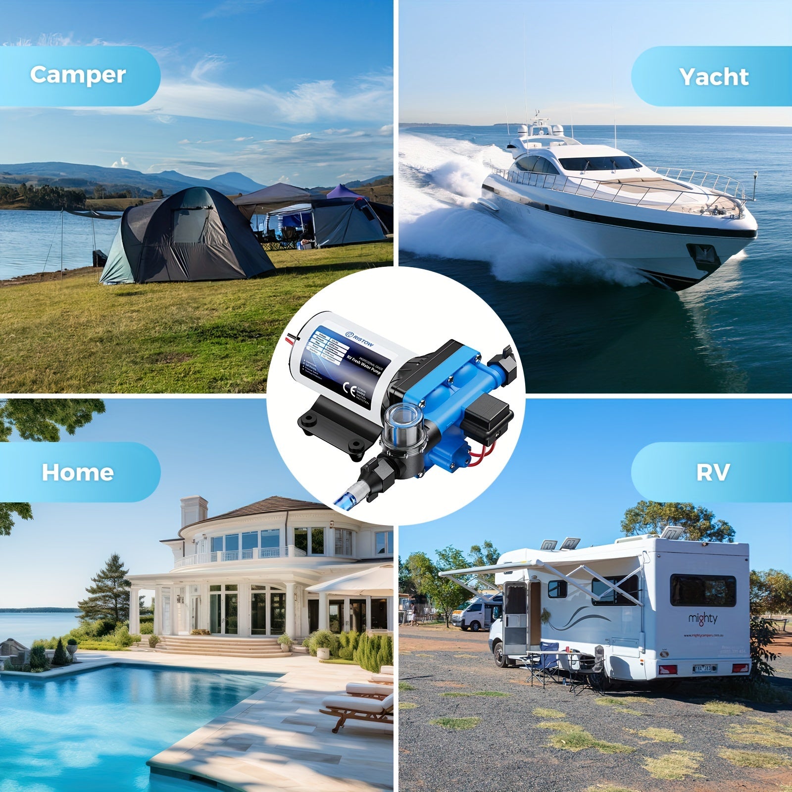 High-Performance 12V RV Water Pump - 3.5GPM, 50PSI Self-Priming Diaphragm with Filter & Adapter for RVs