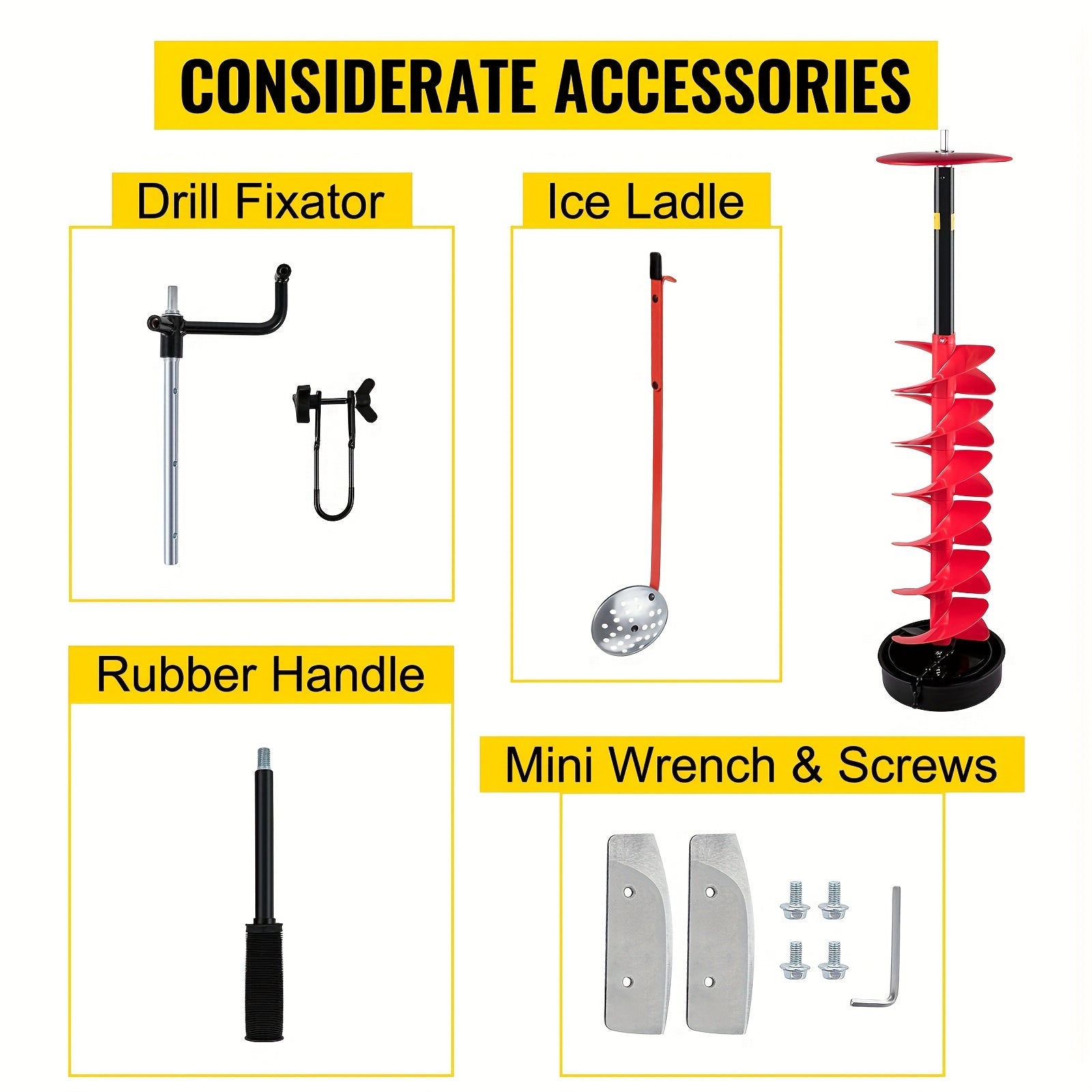 Ice Drill Auger, 8'' Diameter Nylon Ice Auger, 41'' Length Ice Auger Bit