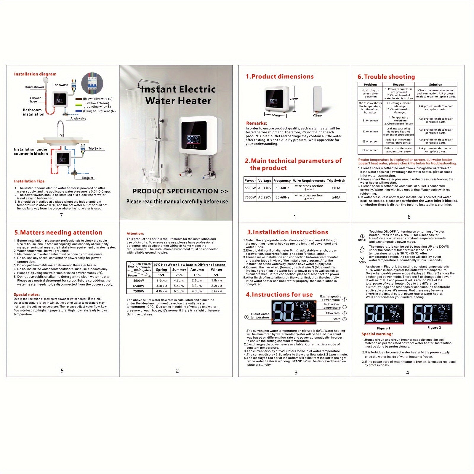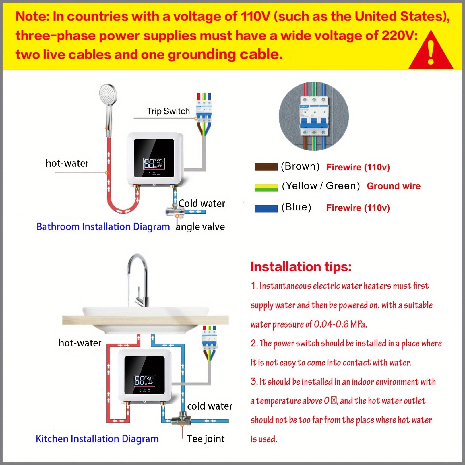 Dear Buyer: This Is A 220V 7500W Instant Electric Water Heater. If Used In The United States, A Three-phase Line Must Be Connected To Ensure 220V Voltage Input. Please Confirm Whether The Voltage Matches Before Use And Strictly Follow The Instructions For Installation And Debugging. After Installation, Be Sure To Turn On The Water First And Then The Electricity.
