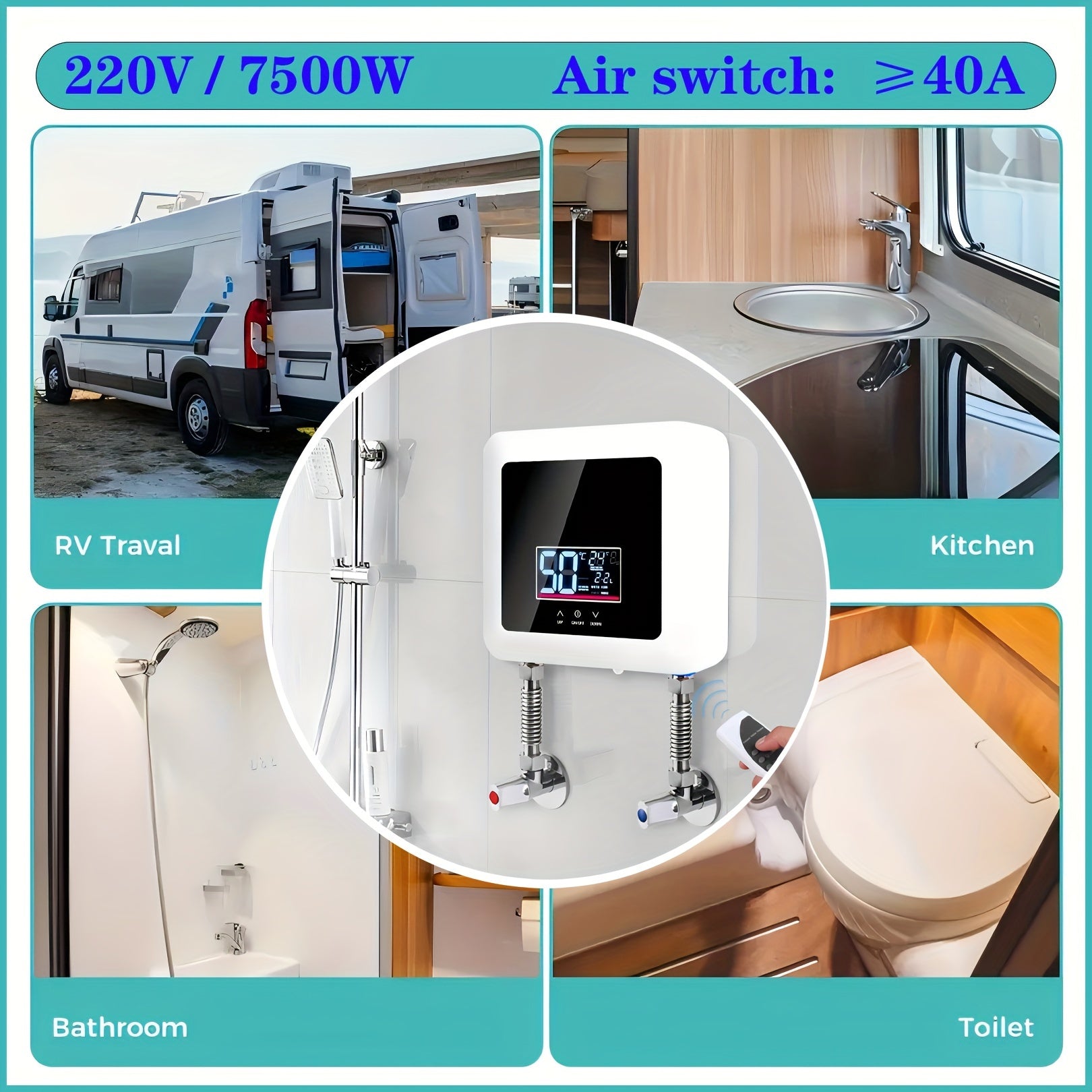 Instant Electric Water Heater, 220V/7500W, Global Use, Remote Control, High-end Cast Aluminum Integrated Heating Body, High-power, Instant Constant Temperature, Safety Protection