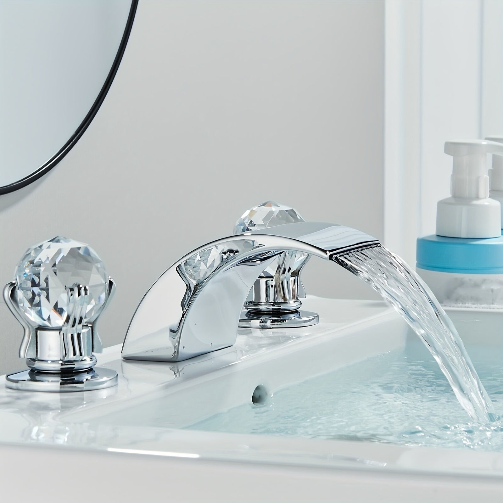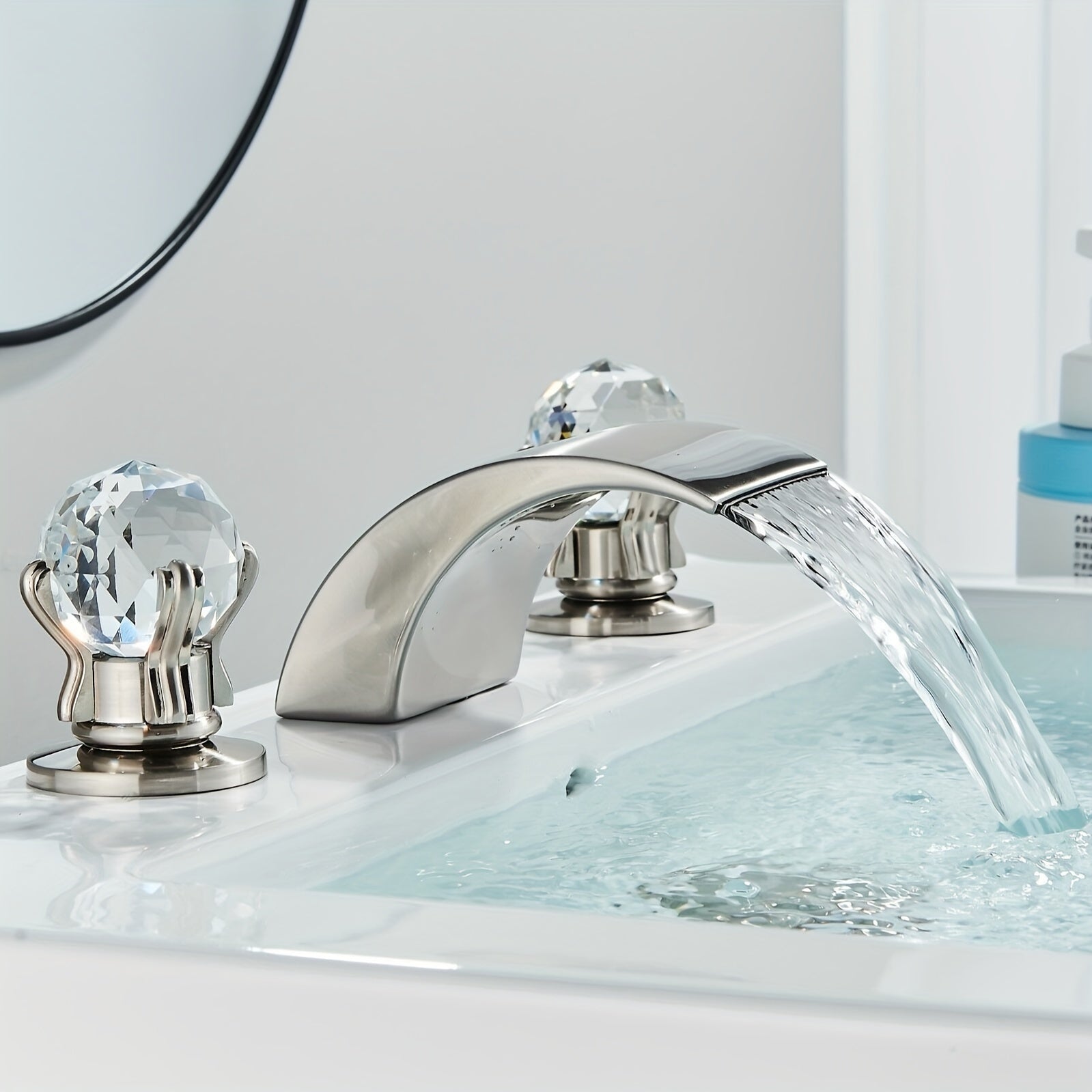 Led Waterfall Widespread Bathroom Sink Faucet 3 Colors Change Led Waterfall Deck Mount