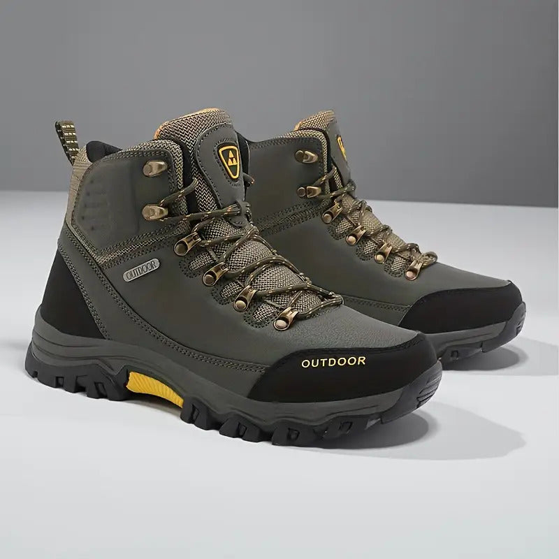 Men's All-Season High-Top Hiking Shoes/Flats - Heavy-Duty & Rubber Boots-like Design, Lace-Up Outdoor Trekking Sneakers for Camping, Mountain Climbing, Trail Shoes For Men, Mountain Shoes For Men, Hill Shoes For Men, Heavy Du