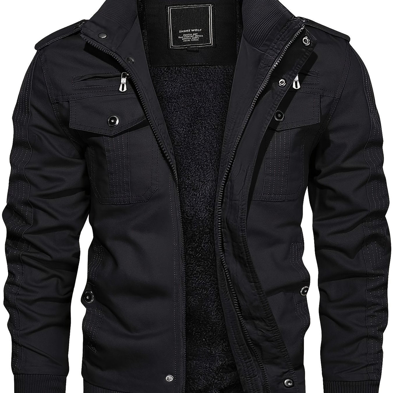 Men's Fleece Jacket And Coat Winter Full Zip Multi-Pocket 2 Chest Pockets 2 Side Pockets And 1 Inner Pocket Fleece Lined Windproof