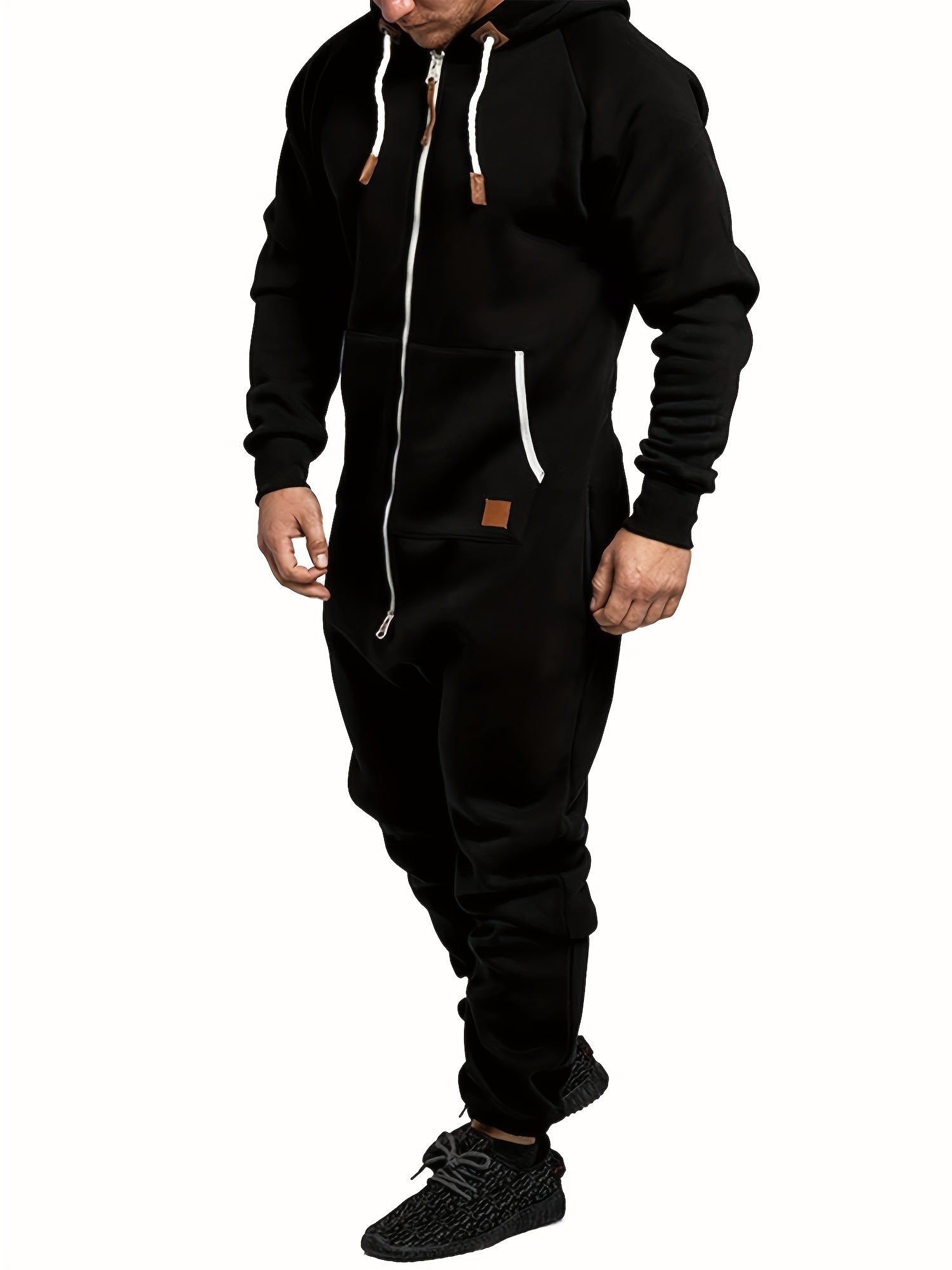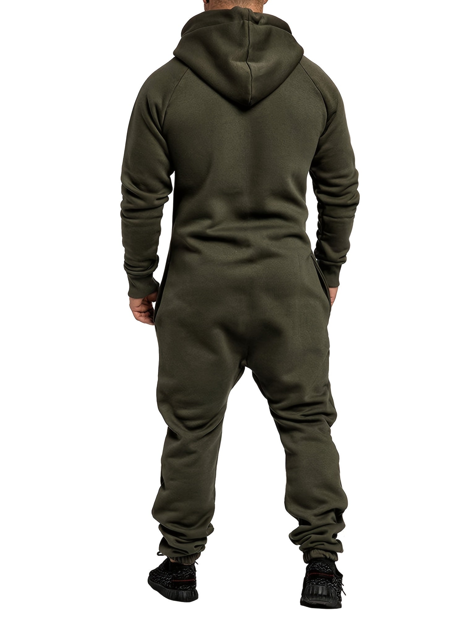 Men'S Hooded Fleece Lined Kangaroo Pocket Jumpsuit