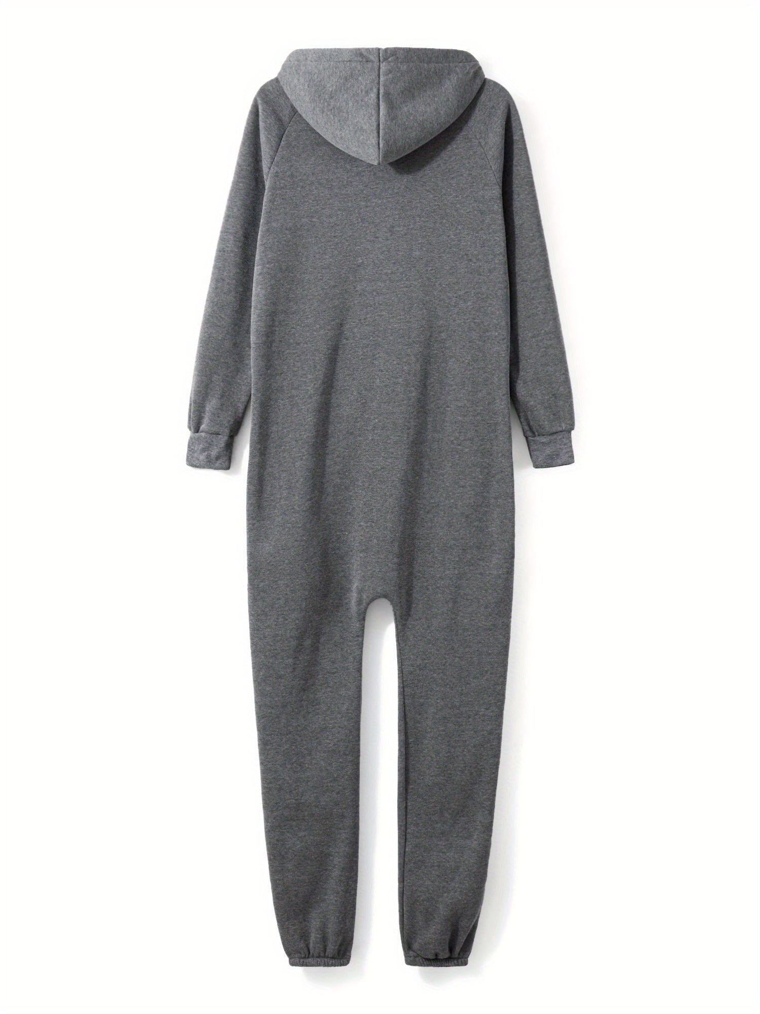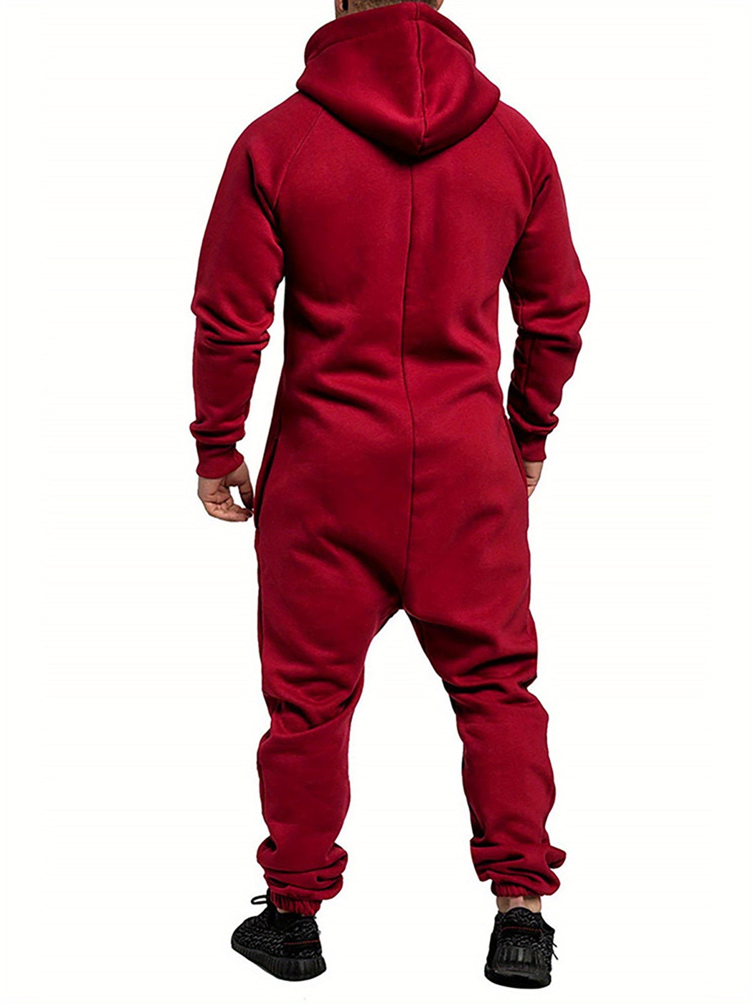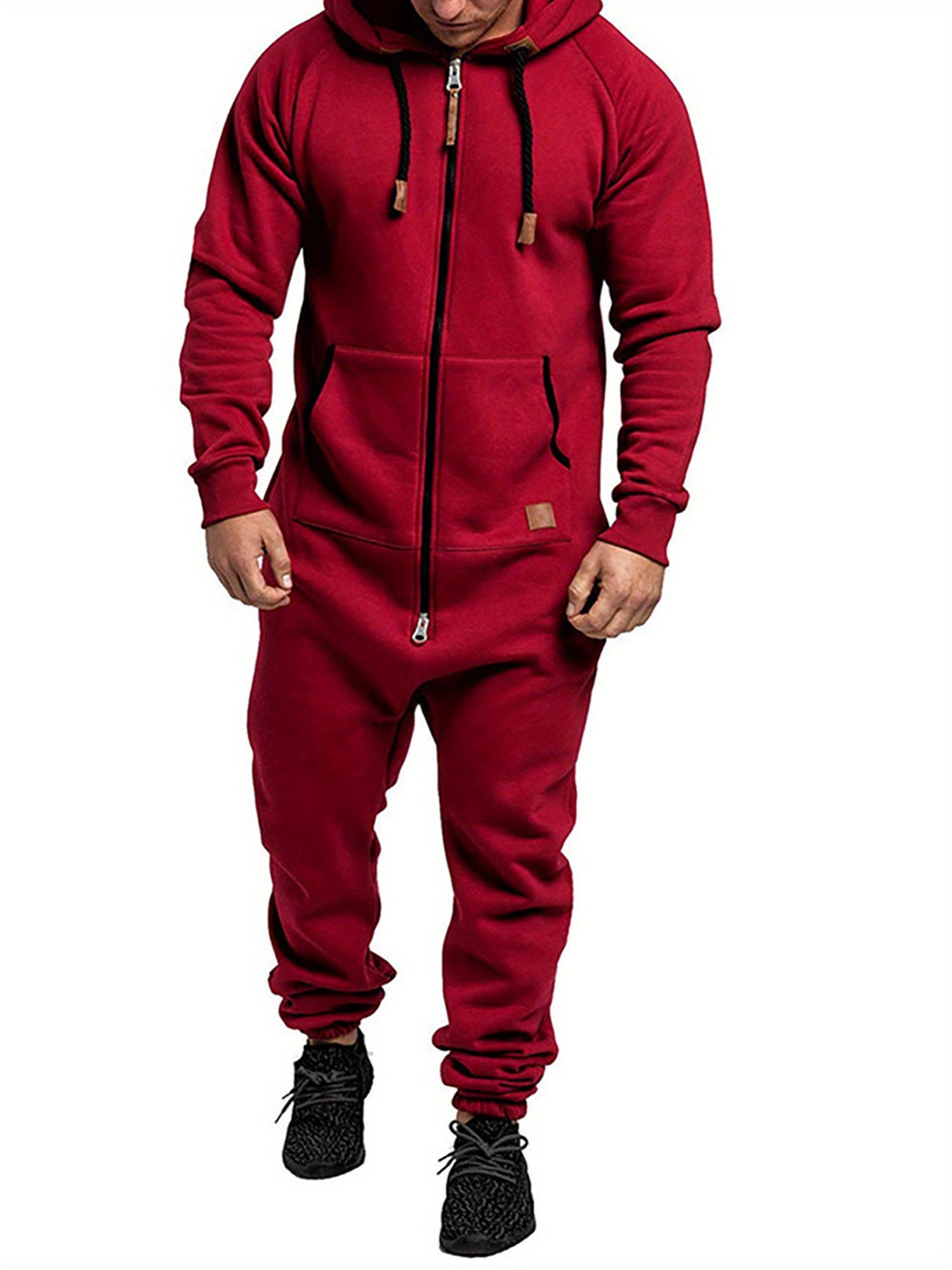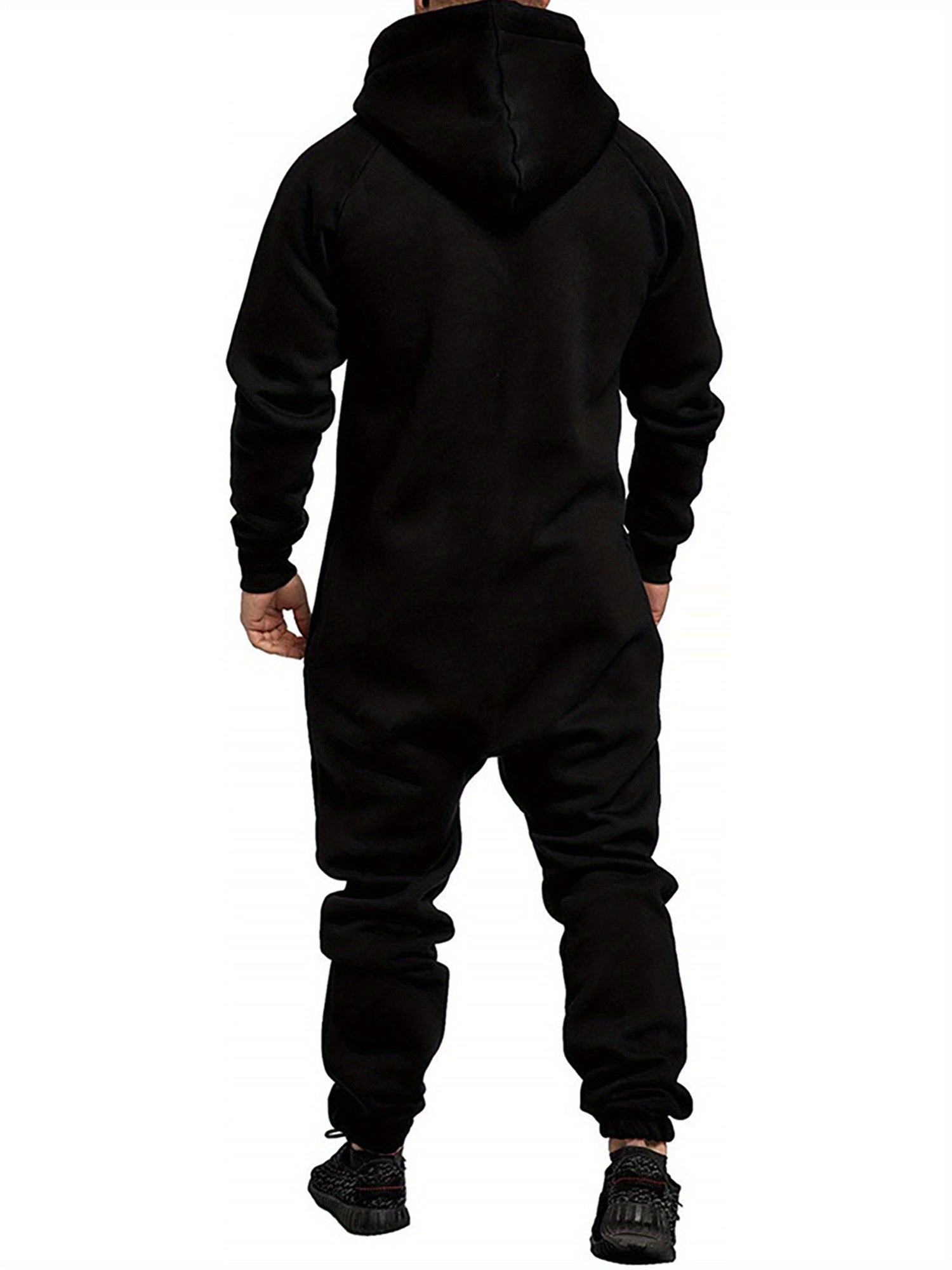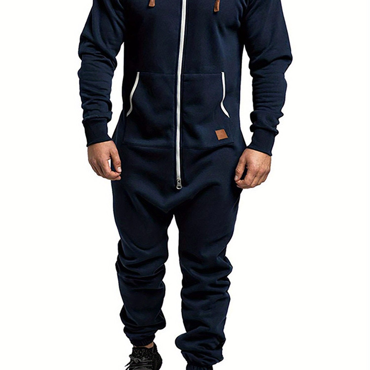 Men's Hooded Fleece Lining Jumpsuit, Long Sleeve Full Zipper Overalls with Kangaroo Pockets