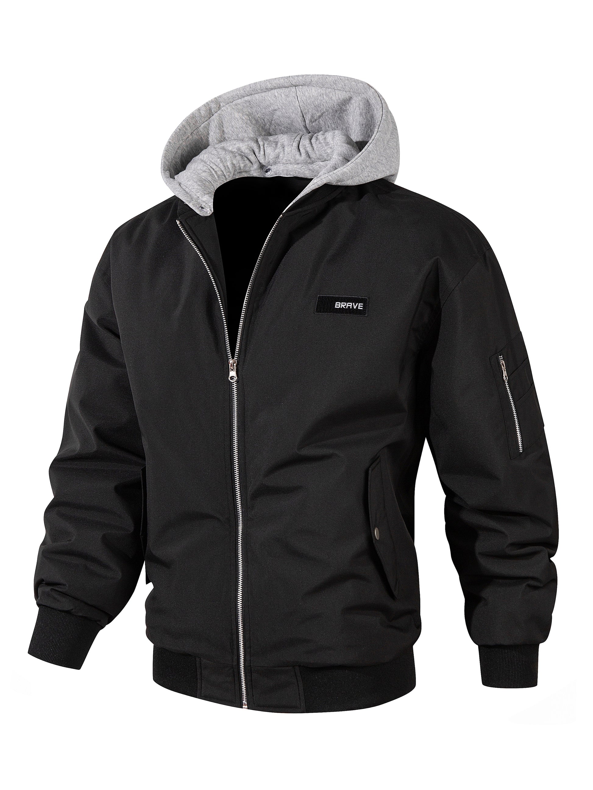 Men's Solid Color Windproof Soft Shell Jacket, Multi-pocket Design