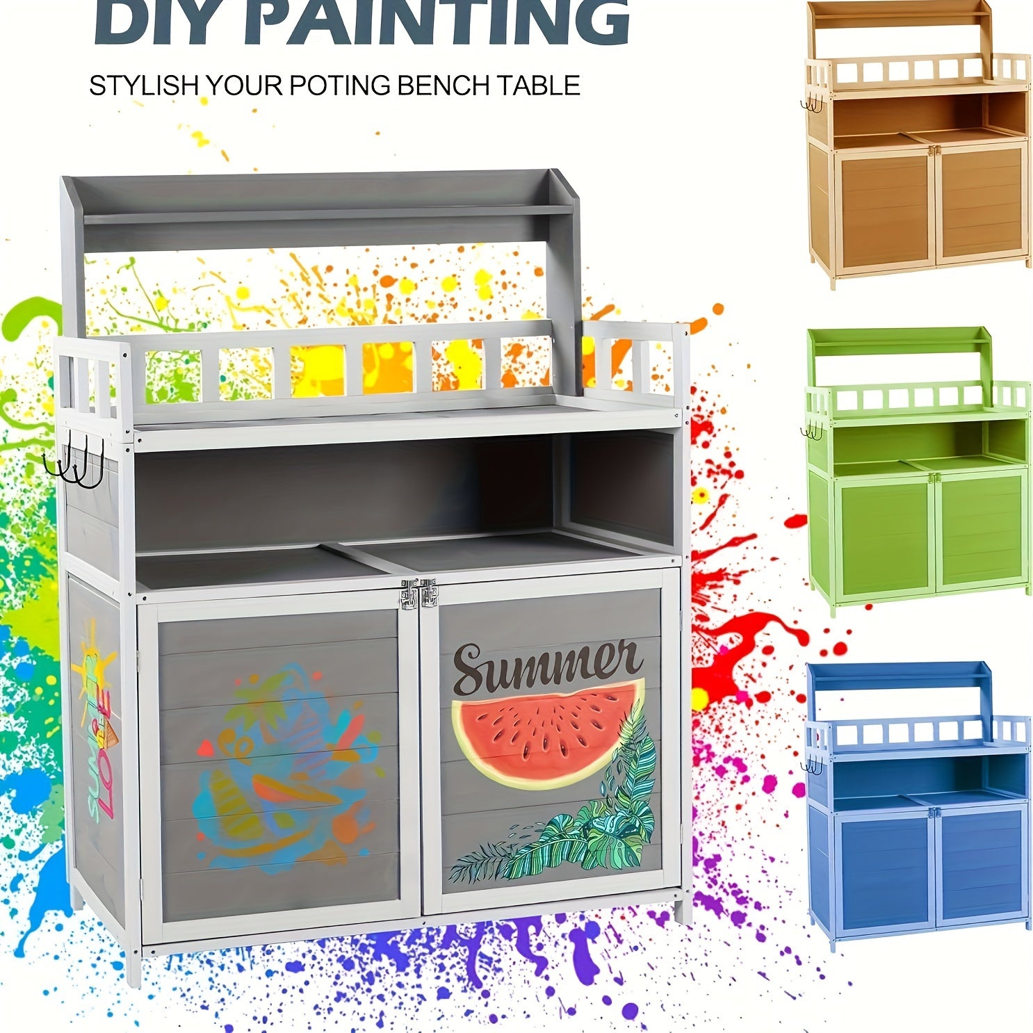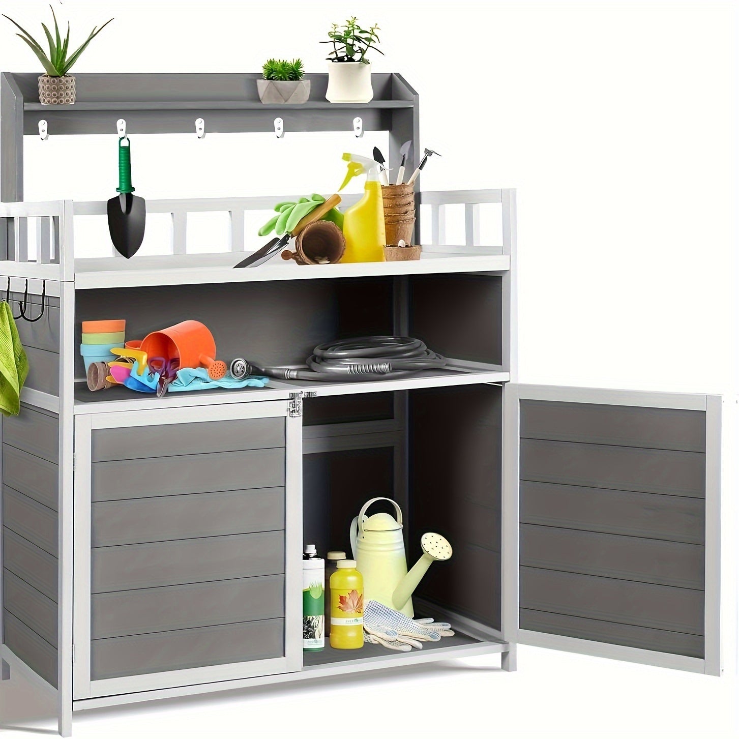 Outdoor Potting Bench, Outdoor Planting Workbench Table Wooden Storage Plant Table Cabinet Gardening Table For Patio,