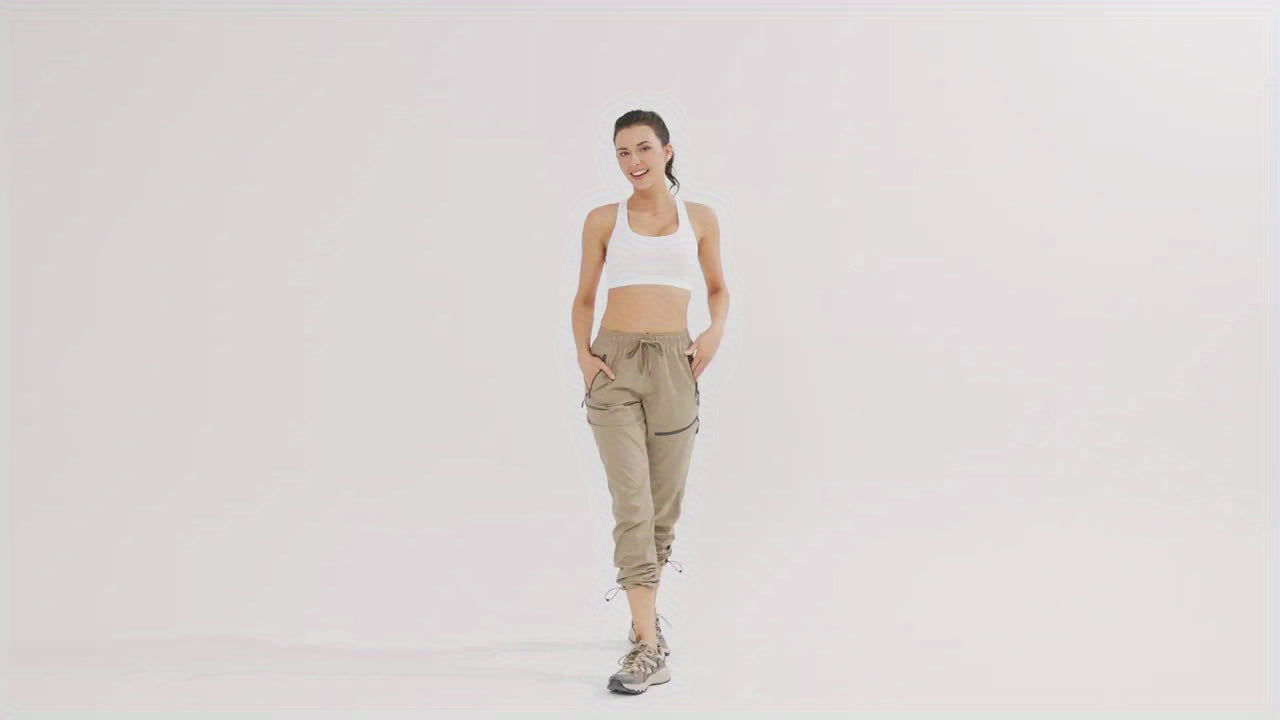 Plus Size Women's Cargo Pants, Lightweight, Quick Dry, Water Resistant, Elastic Waist, Zipper Pockets