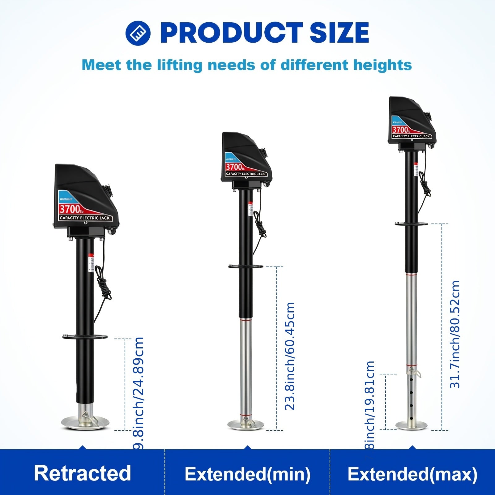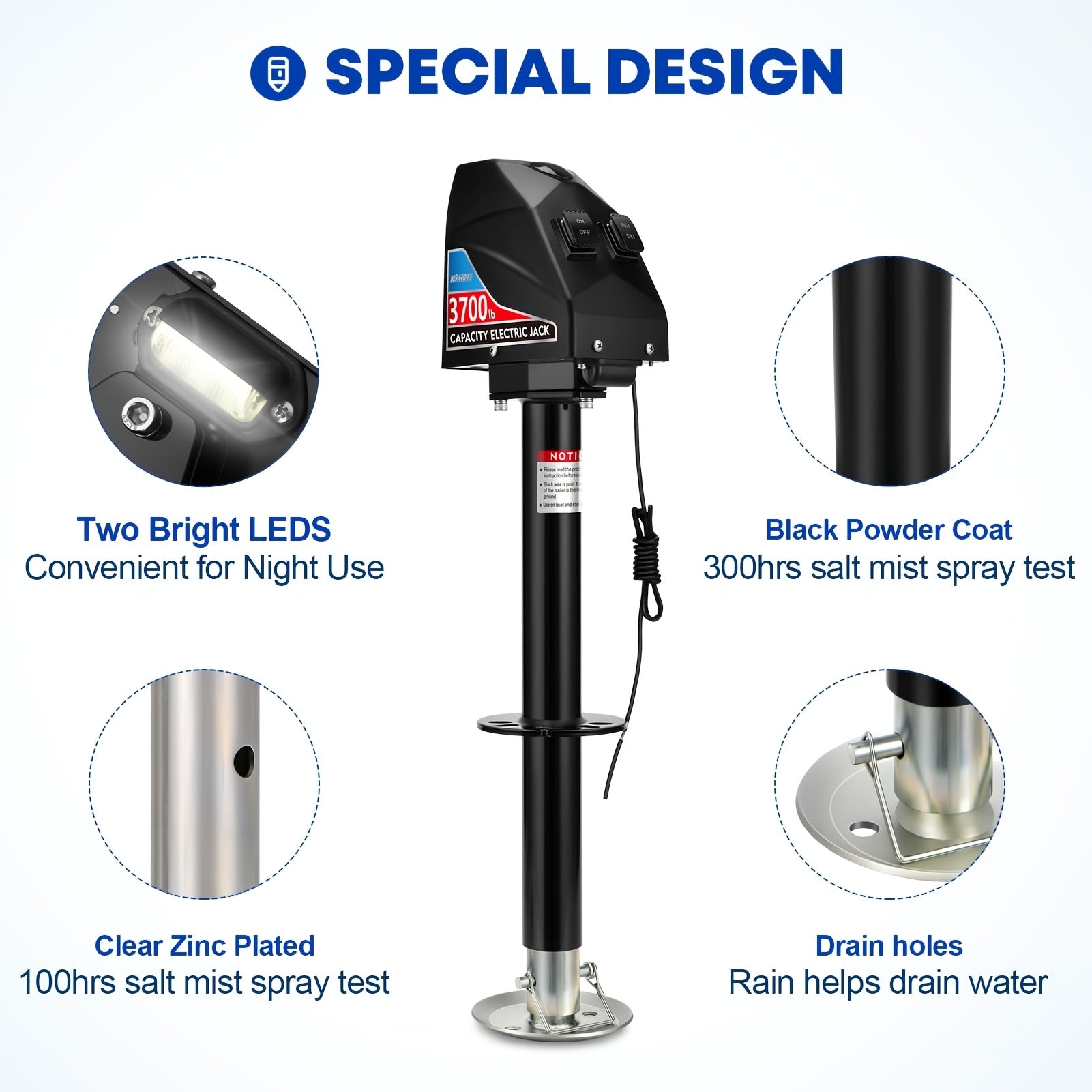 RV Electric Trailer Jack 5000lbs/3700lbs, Tongue Jack with Waterproof Cover & LED Work Light, Easy Install, 22" Lift, 12V DC