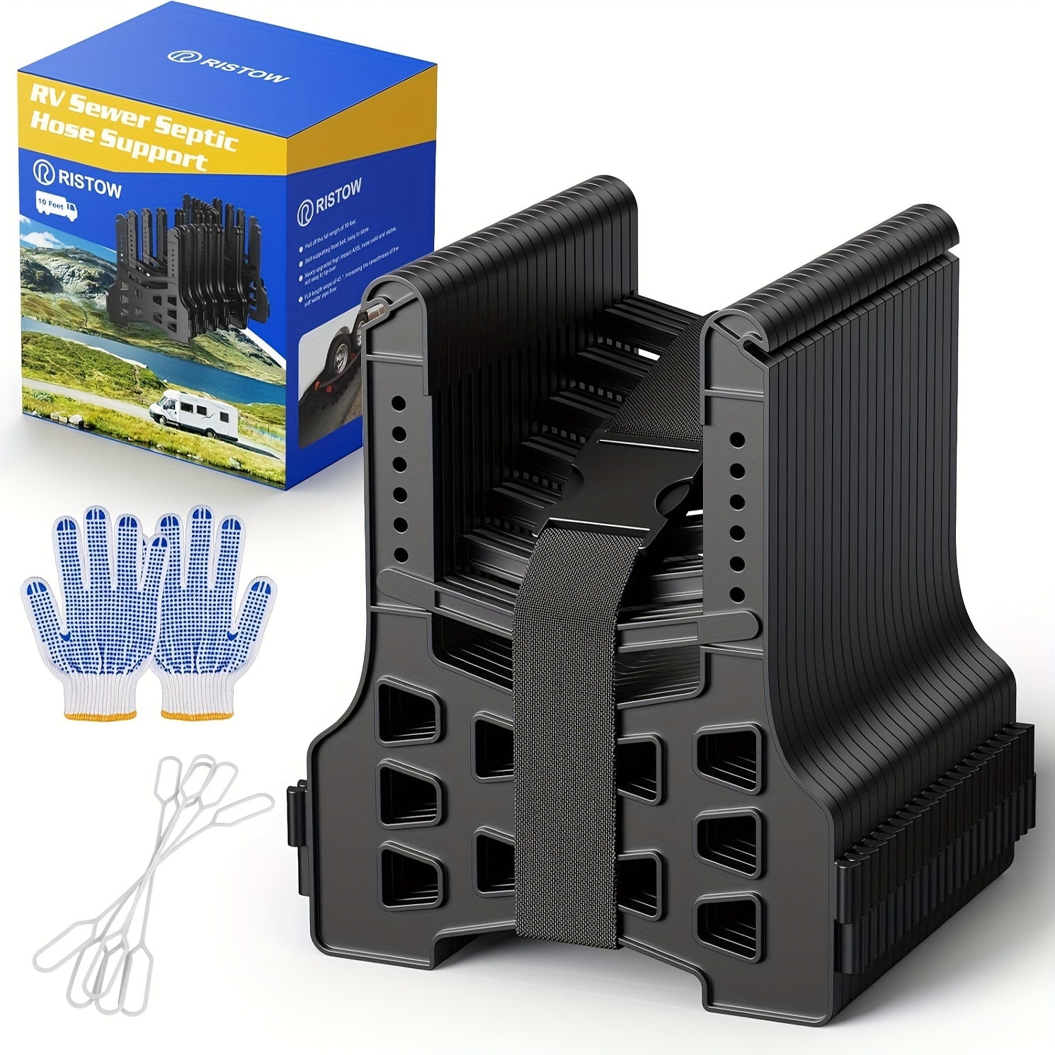 RV Sewer Hose Support 10 Feet, Height-Adjustable ABS Sewer Hose Support For RV Camper, Easy To Set Up, And Protects And Supports Sewer Hose