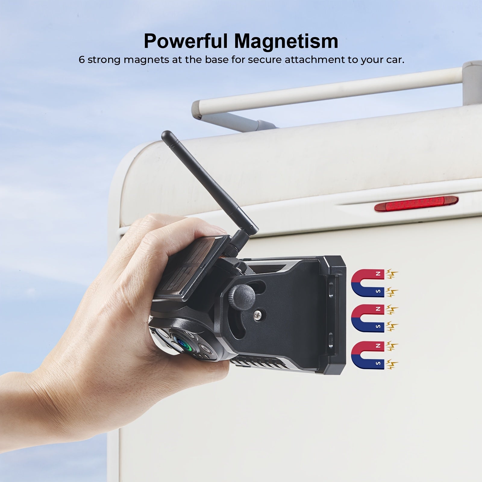 Solar Wireless Magnetic Backup Camera, Battery Powered Rechargeable, Rear View Hitch Camera With 7 Inch 1080P Monitor System