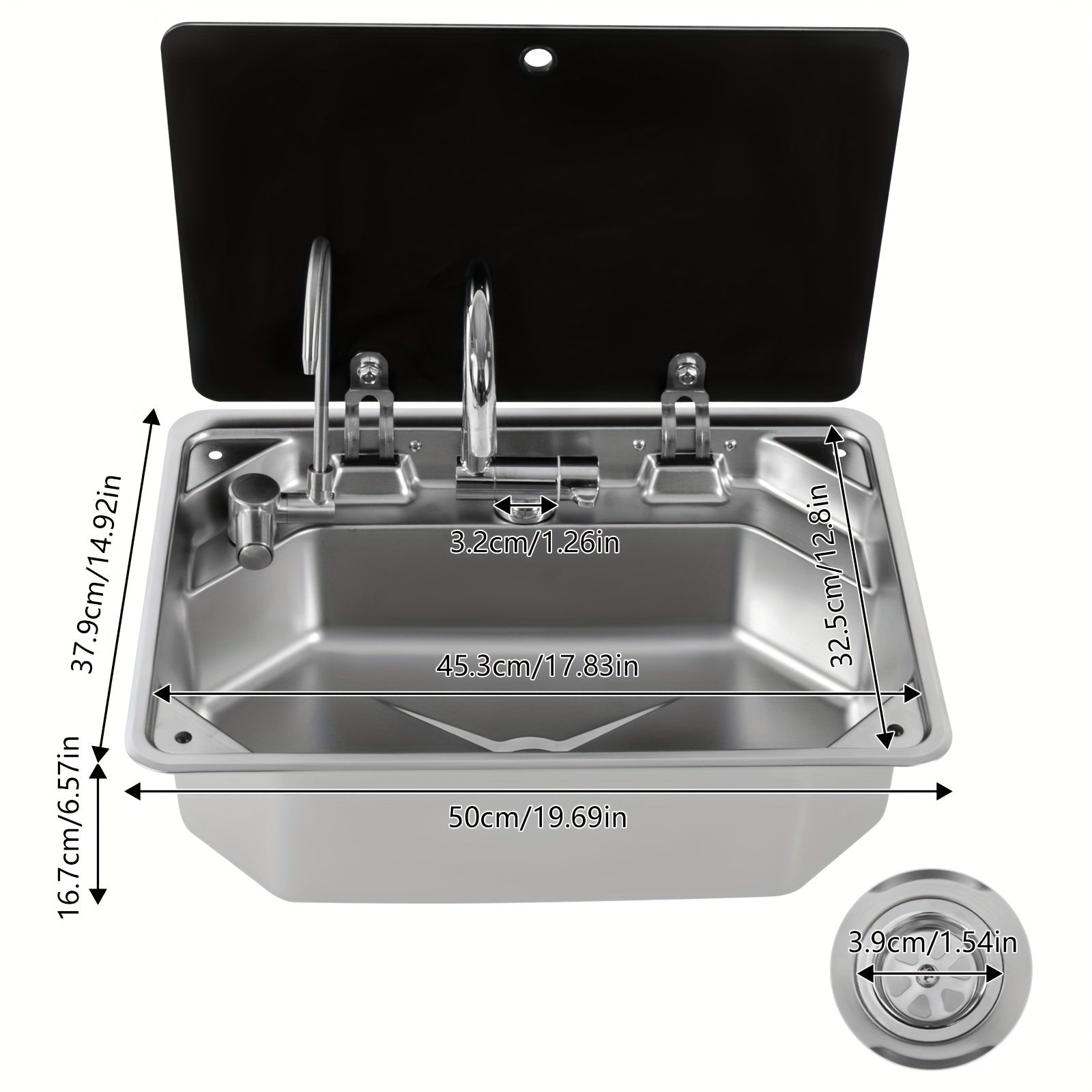 Spacious Stainless Steel RV Kitchen Sink - 17.83x12.8" with Hot & Cold Water Faucet