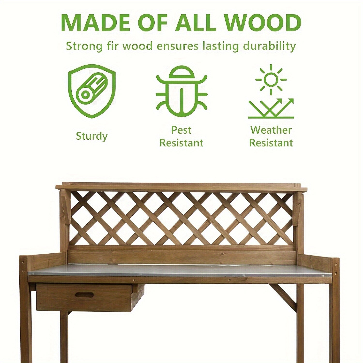 ROBUST FIR WOOD POTTING BENCH: PetsCosset 's 41" L x 16" W x 49" H bench, crafted from 100% solid Fir Wood, combines durability and natural aesthetics. Resistant to outdoor wear, it provides a reliable, long-lasting workspace for garden enthusiasts.